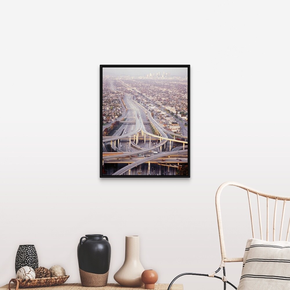 "California, Los Angeles, Aerial view of the city" Black Float Frame Canvas Art