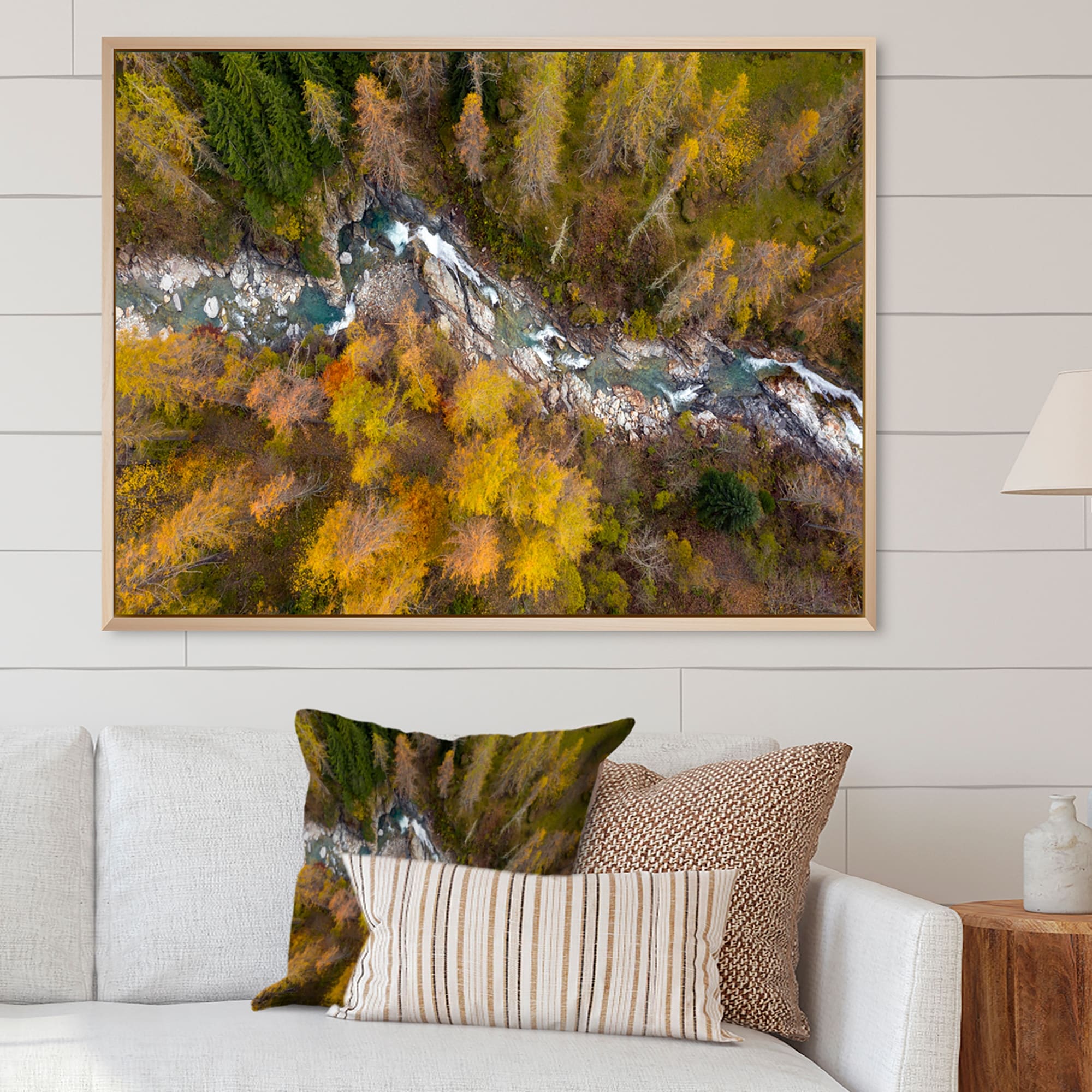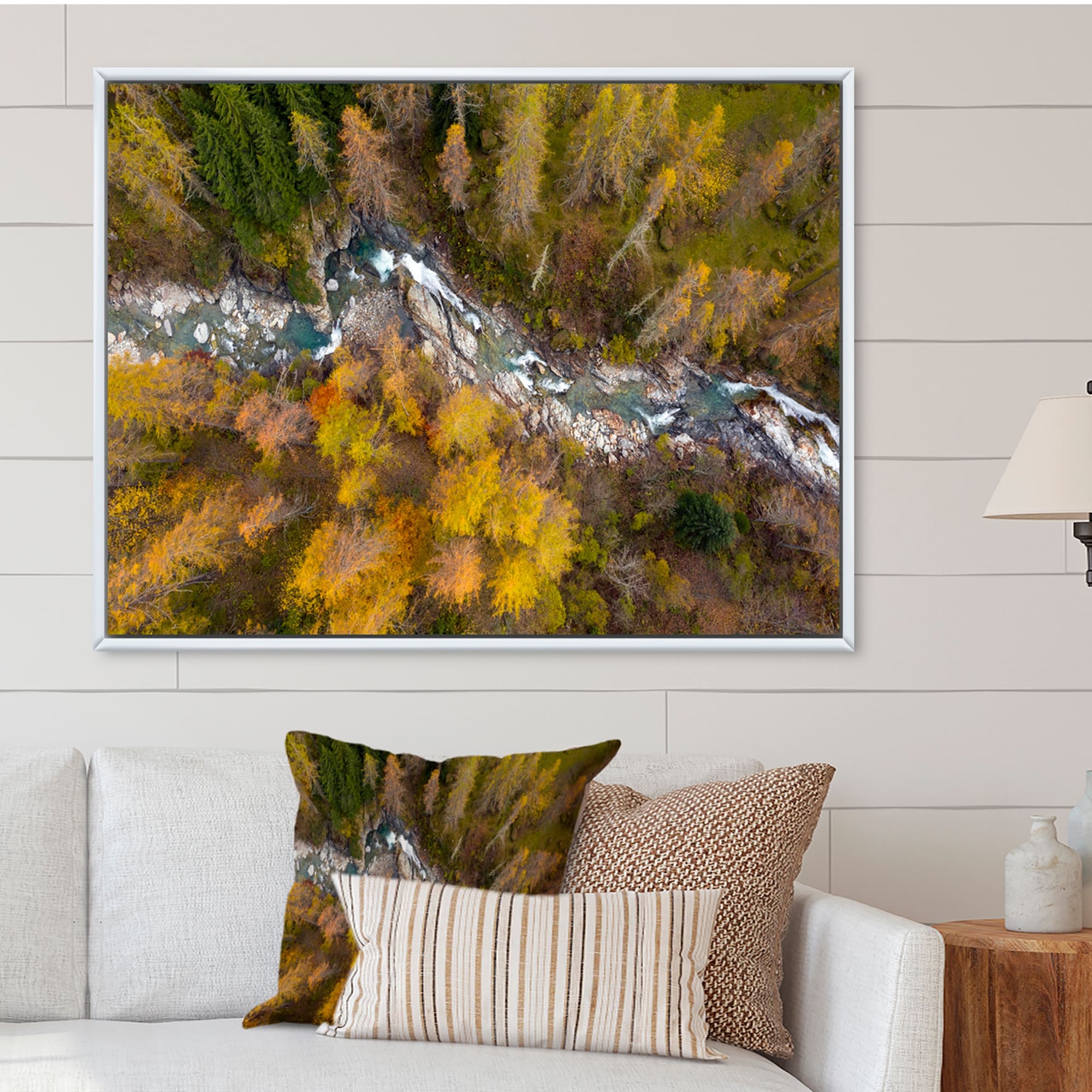 Designart "Aerial View Mountains River Autumn" Traditional Framed Canvas Art Print