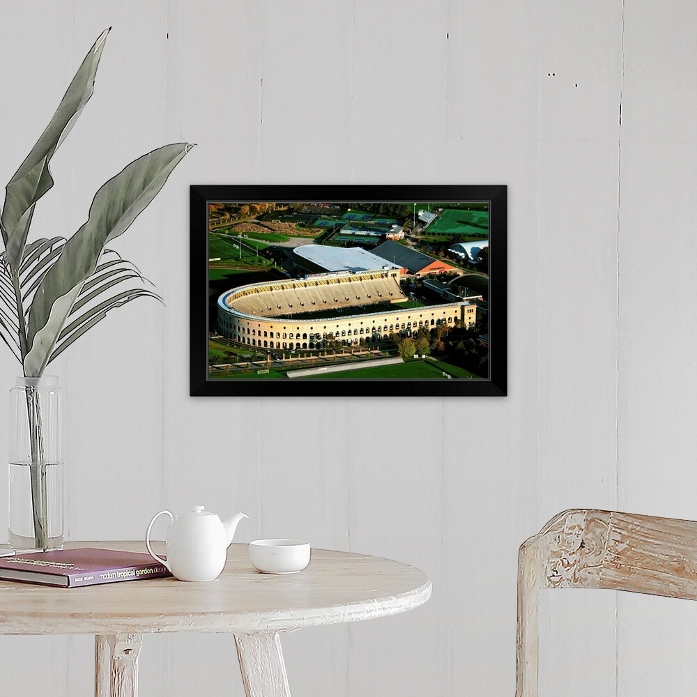 "AERIAL VIEW of Soldiers Field, home of Harvard Crimson, Harvard, Cambridge, B" Black Framed Print