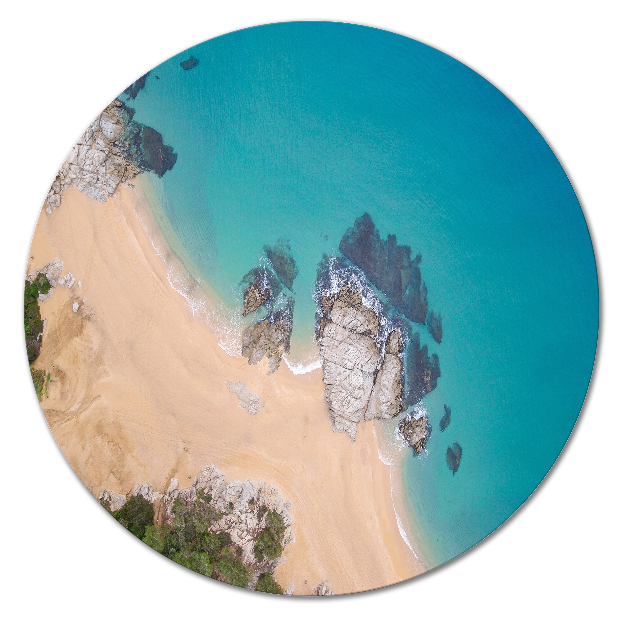Designart 'Aerial Views of the Rocks in Sea on A Sunny Day' Nautical & Coastal Metal Circle Wall Art