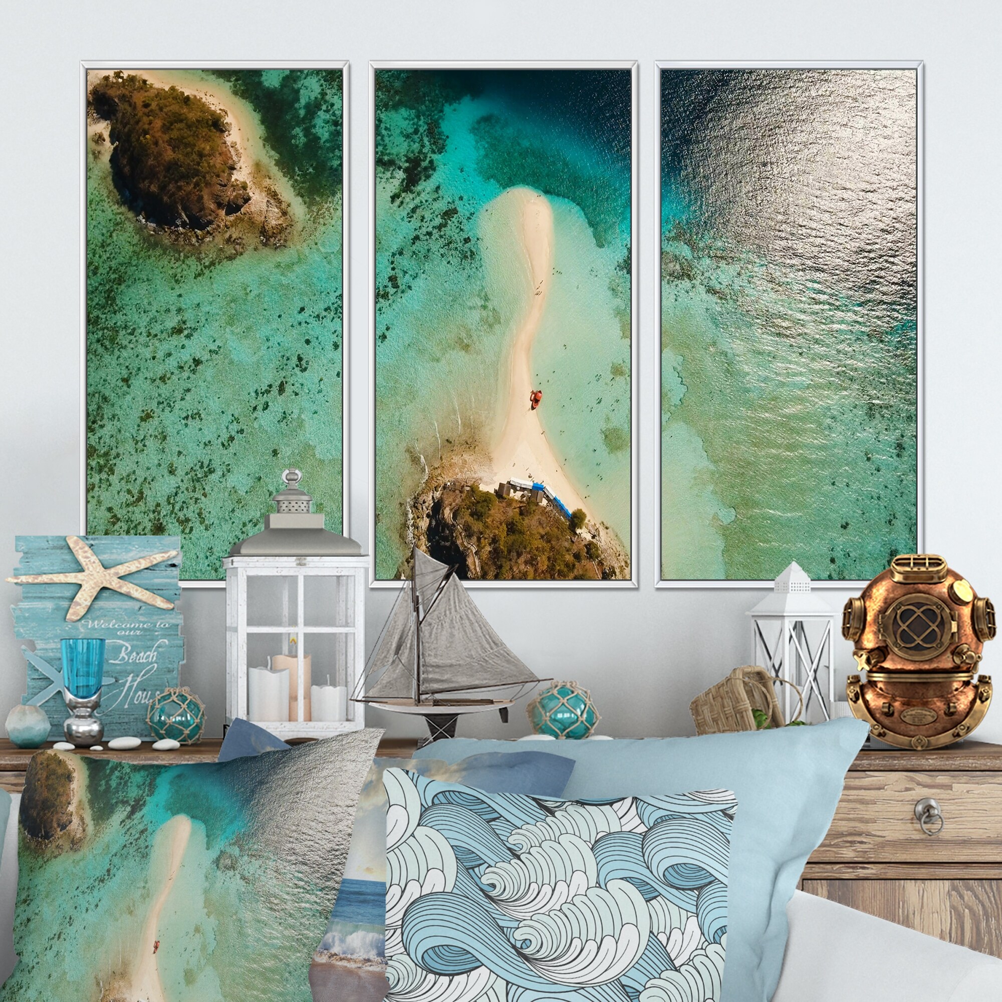 Designart "Aerial View Turquoise Water on Beahc" Nautical & Coastal Framed Artwork Set of 3 - 4 Colors of Frames