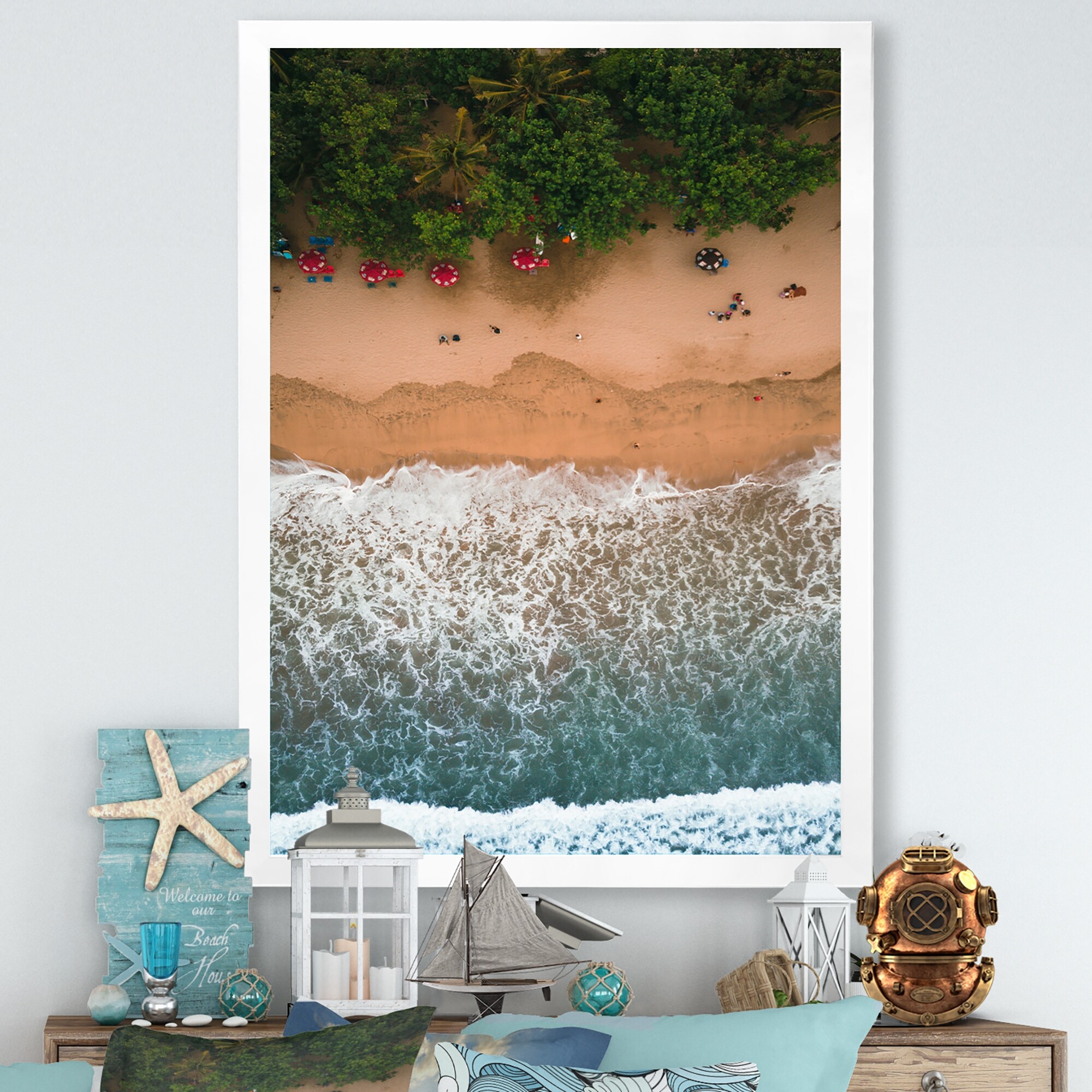 Designart "Aerial View of Tropical Beach VI" Nautical & Coastal Framed Art Print