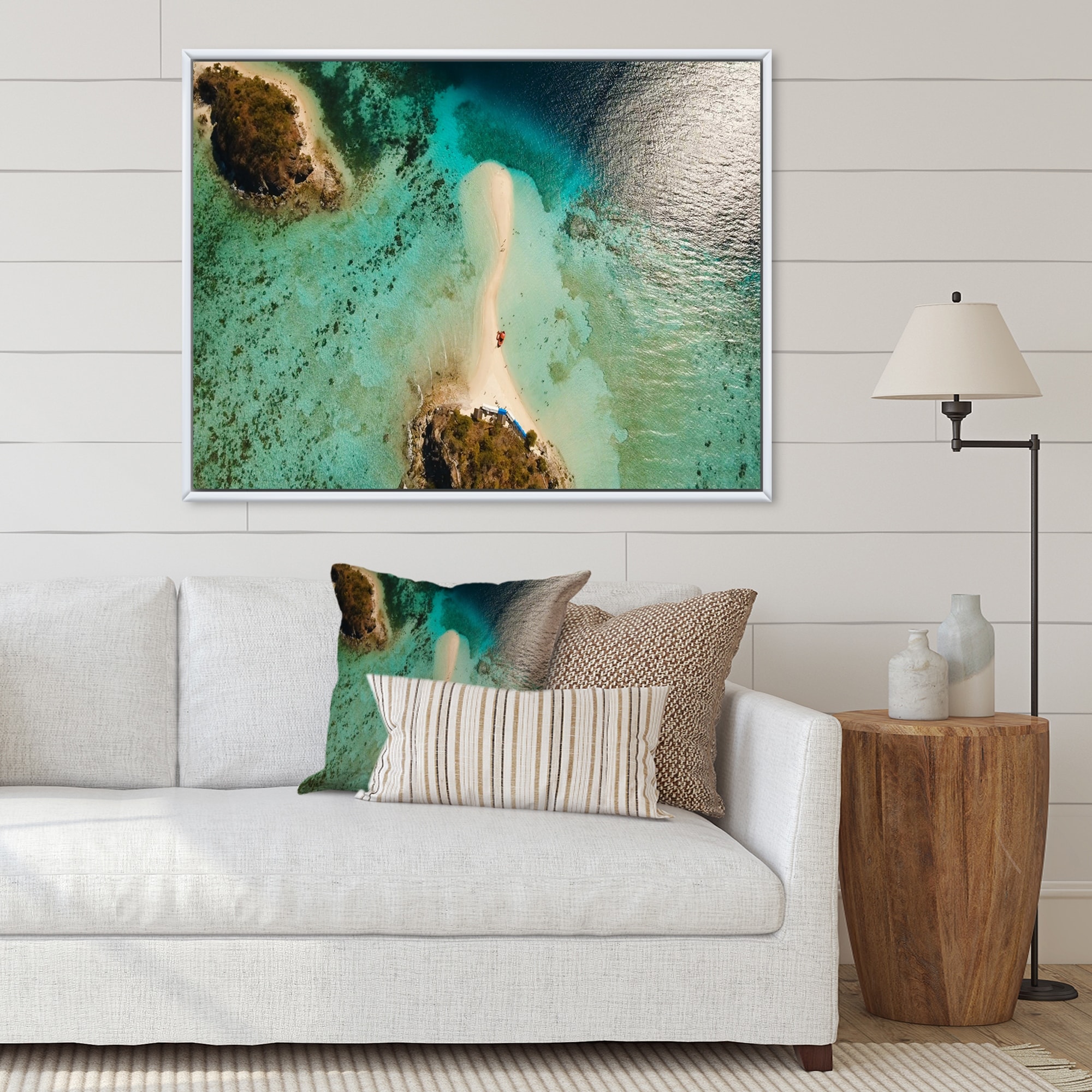 Designart "Aerial View of Sea And Turquoise Beach" Nautical & Coastal Framed Canvas Wall Art Print