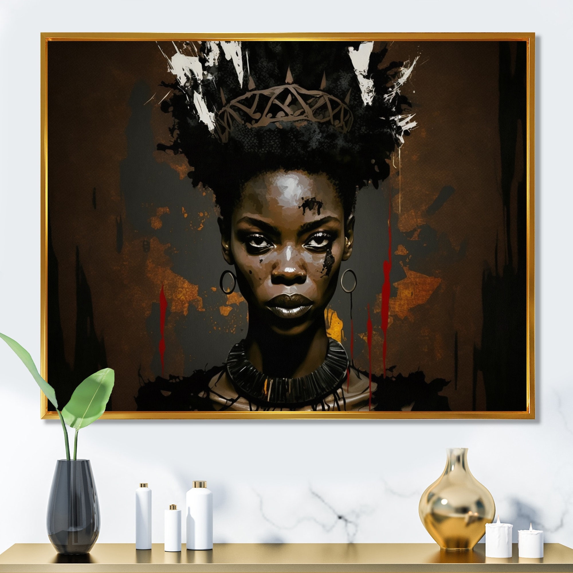 Designart "Classy Portrait of Elegant African Lady VIII" African American Framed Canvas Wall Art Print