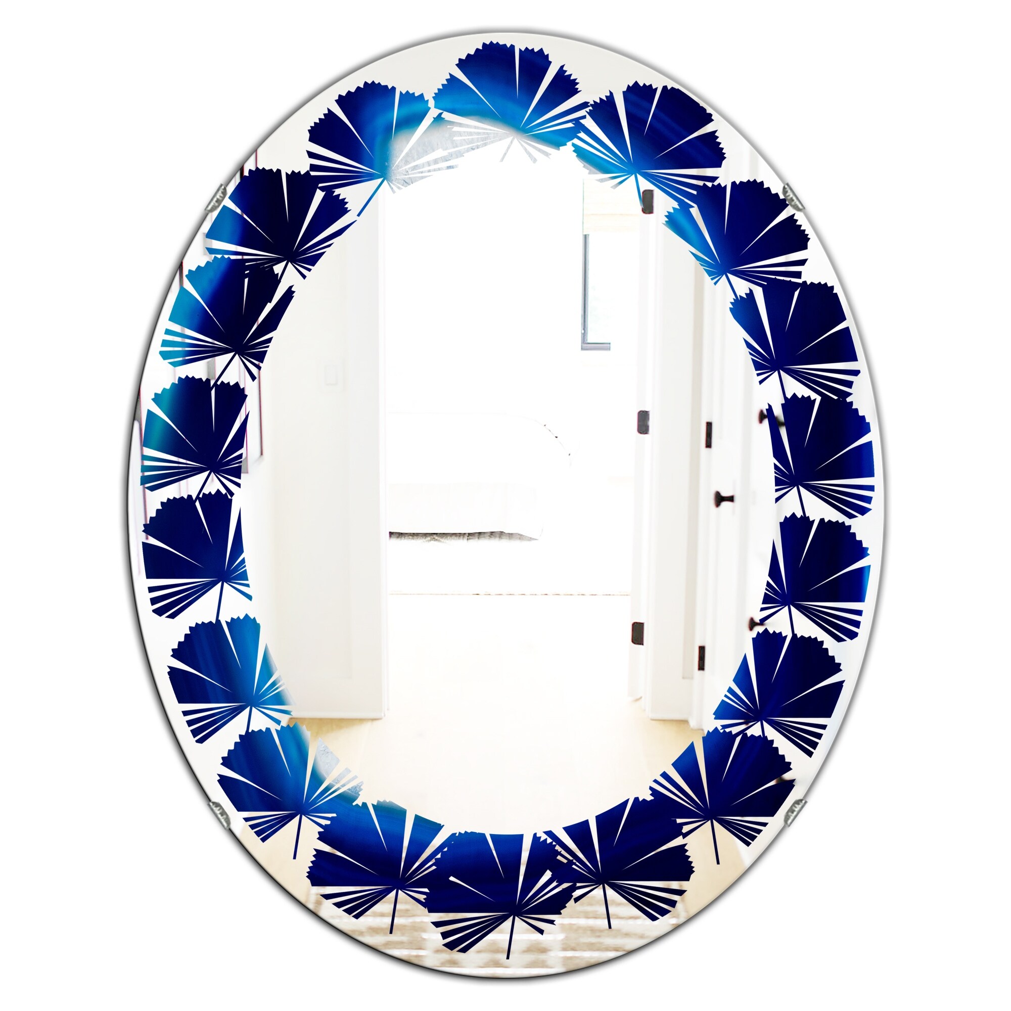 Designart 'Slice of blue agate crystal' Printed Modern Round or Oval Wall Mirror - Leaves