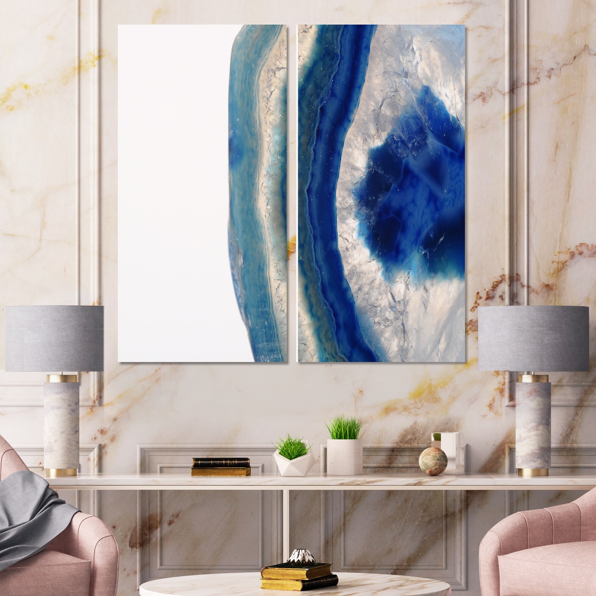 Designart "Macro of Blue Agate Stone" Abstract Canvas Wall Art Print 2 Piece Set