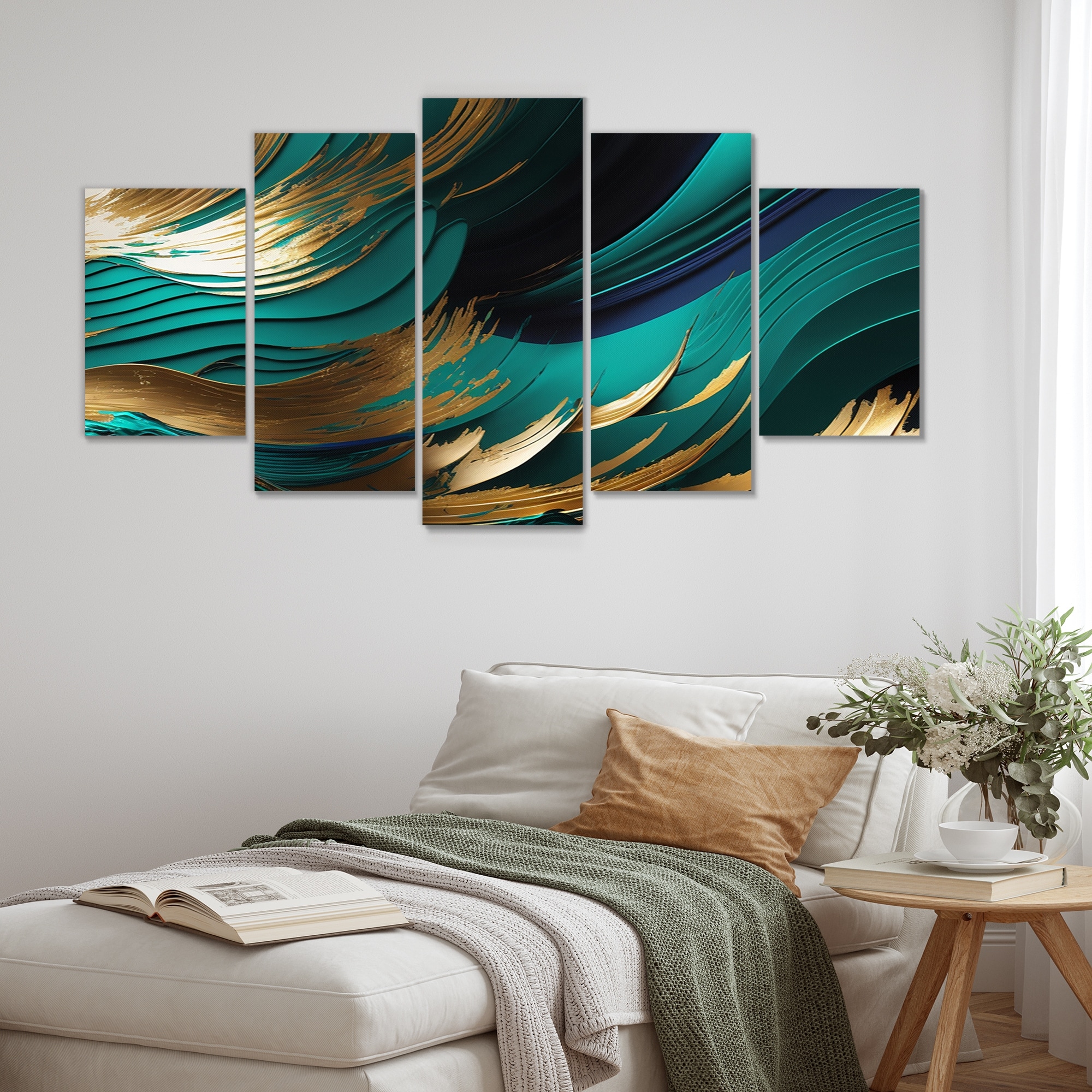 Designart "Green And Gold Agate IV" Transitional Multipanel Wall Art Living Room