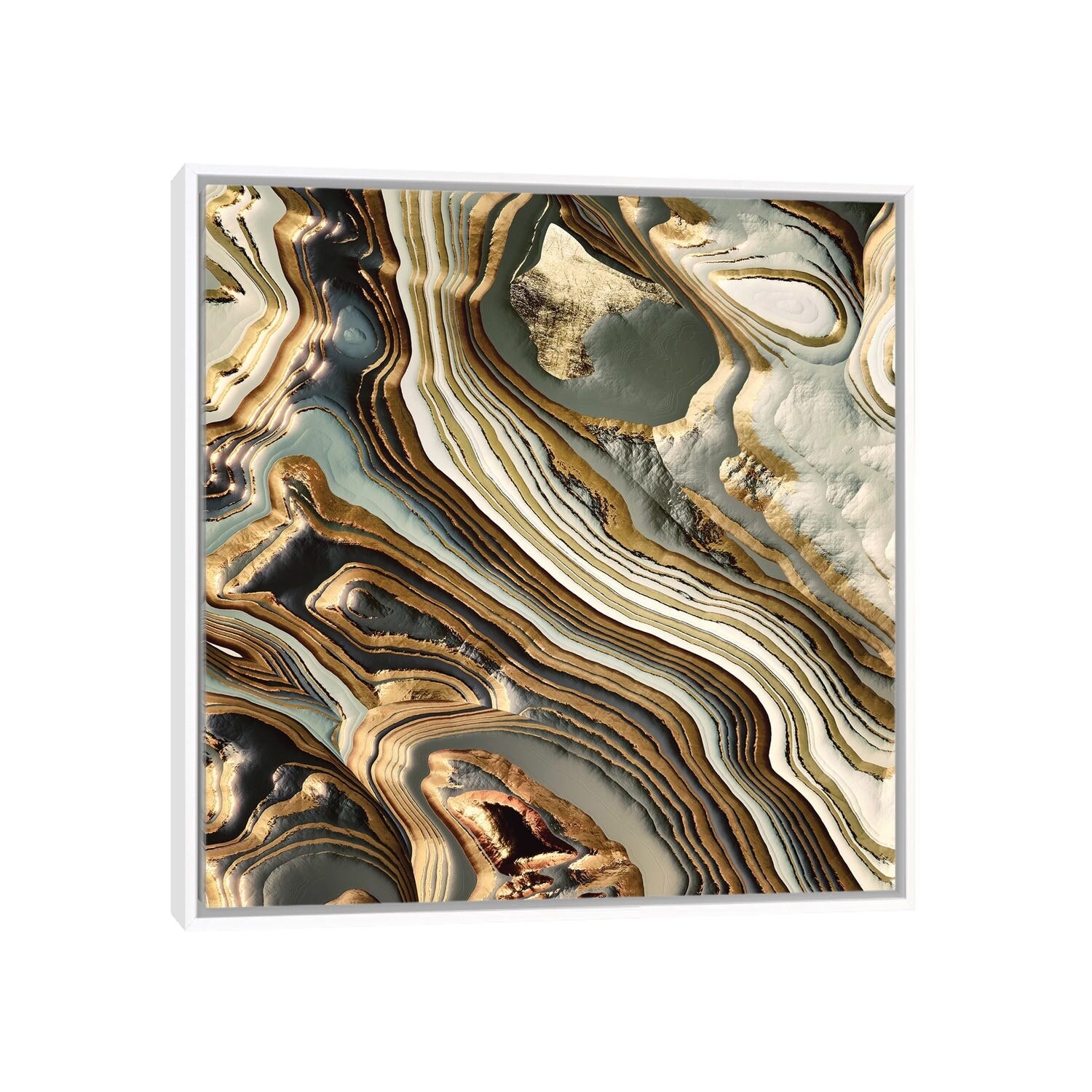 iCanvas "White Gold Agate Abstract" by SpaceFrog Designs Framed