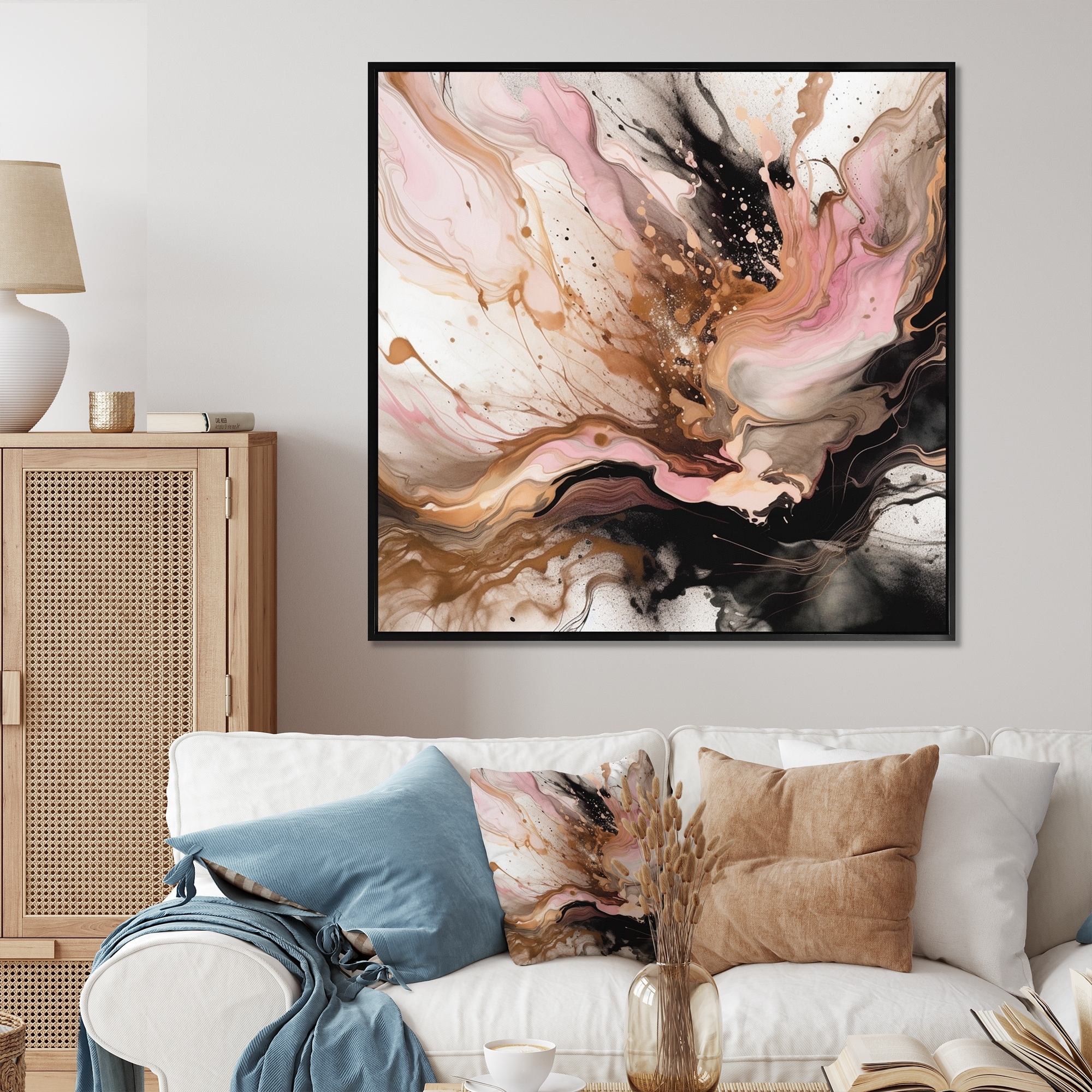 Designart "Pink And White Ethereal Agate" Abstract Marble Framed Canvas Wall Art
