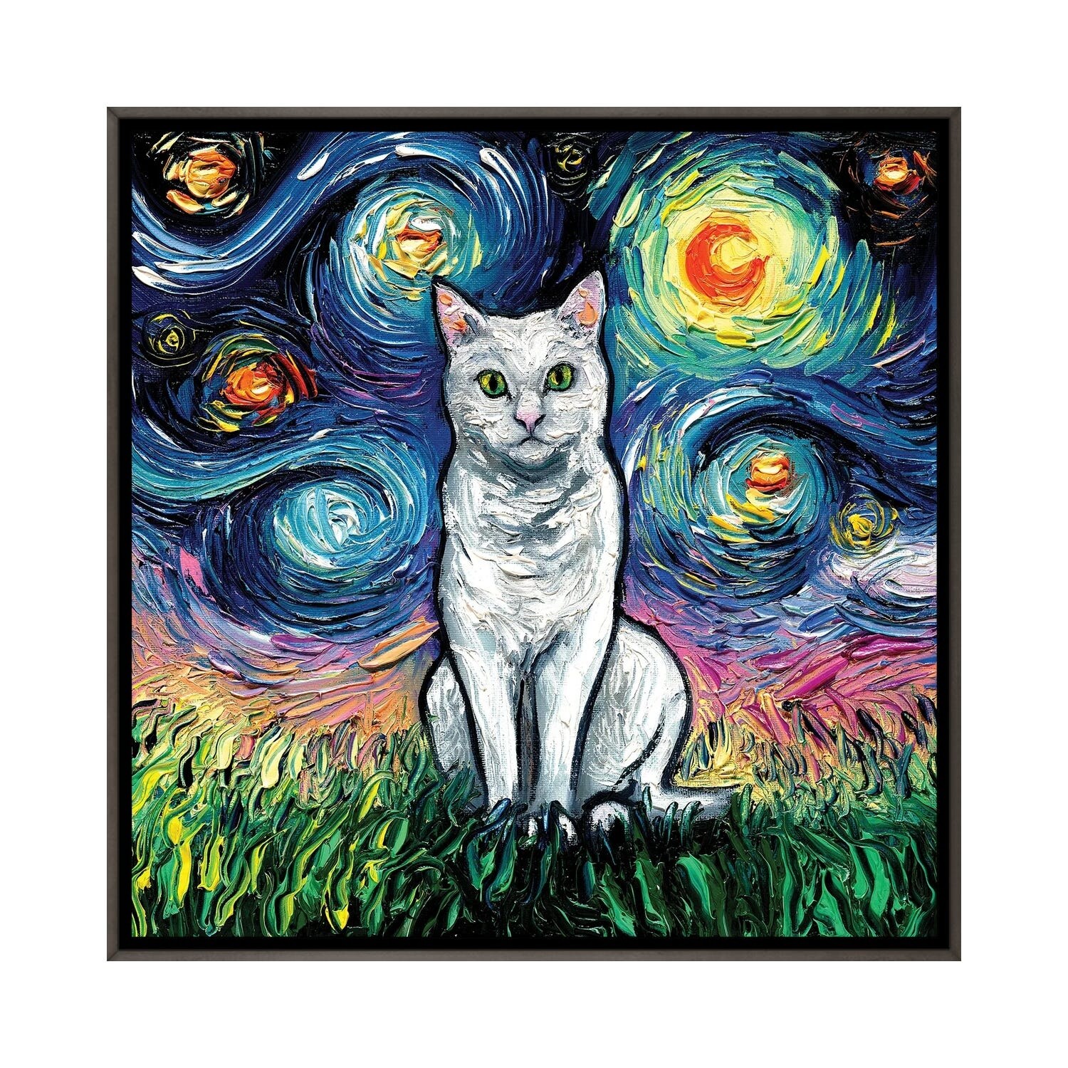 iCanvas "White Cat Night" by Aja Trier Framed