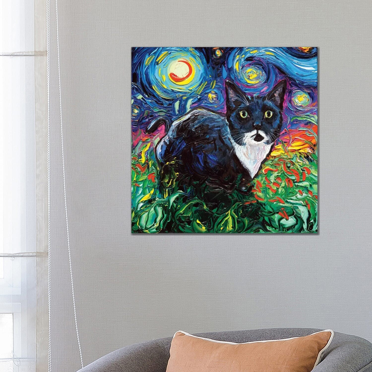 iCanvas "Tuxedo Cat Night" by Aja Trier Canvas Print