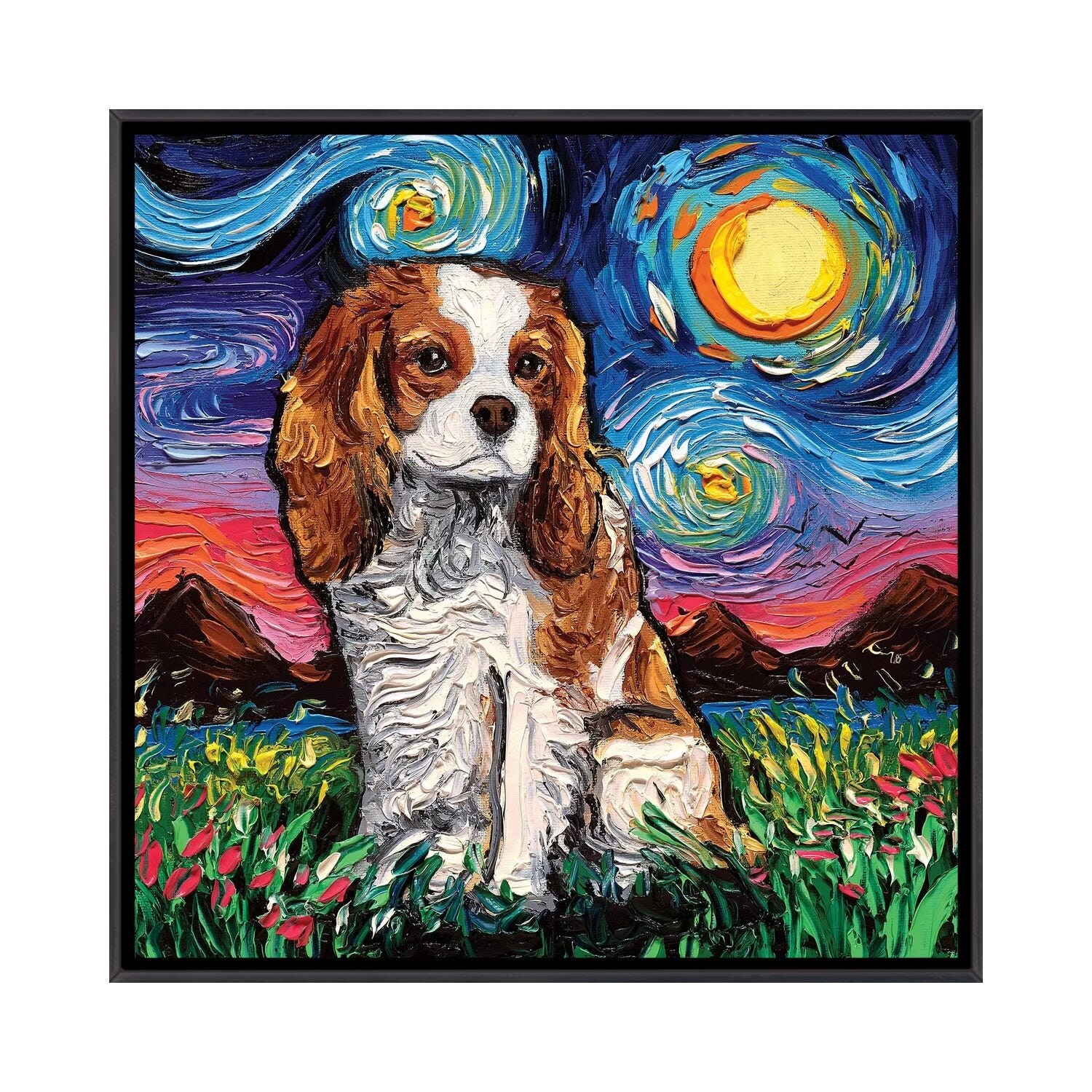 iCanvas "Cavalier King Charles Spaniel Night II" by Aja Trier Framed