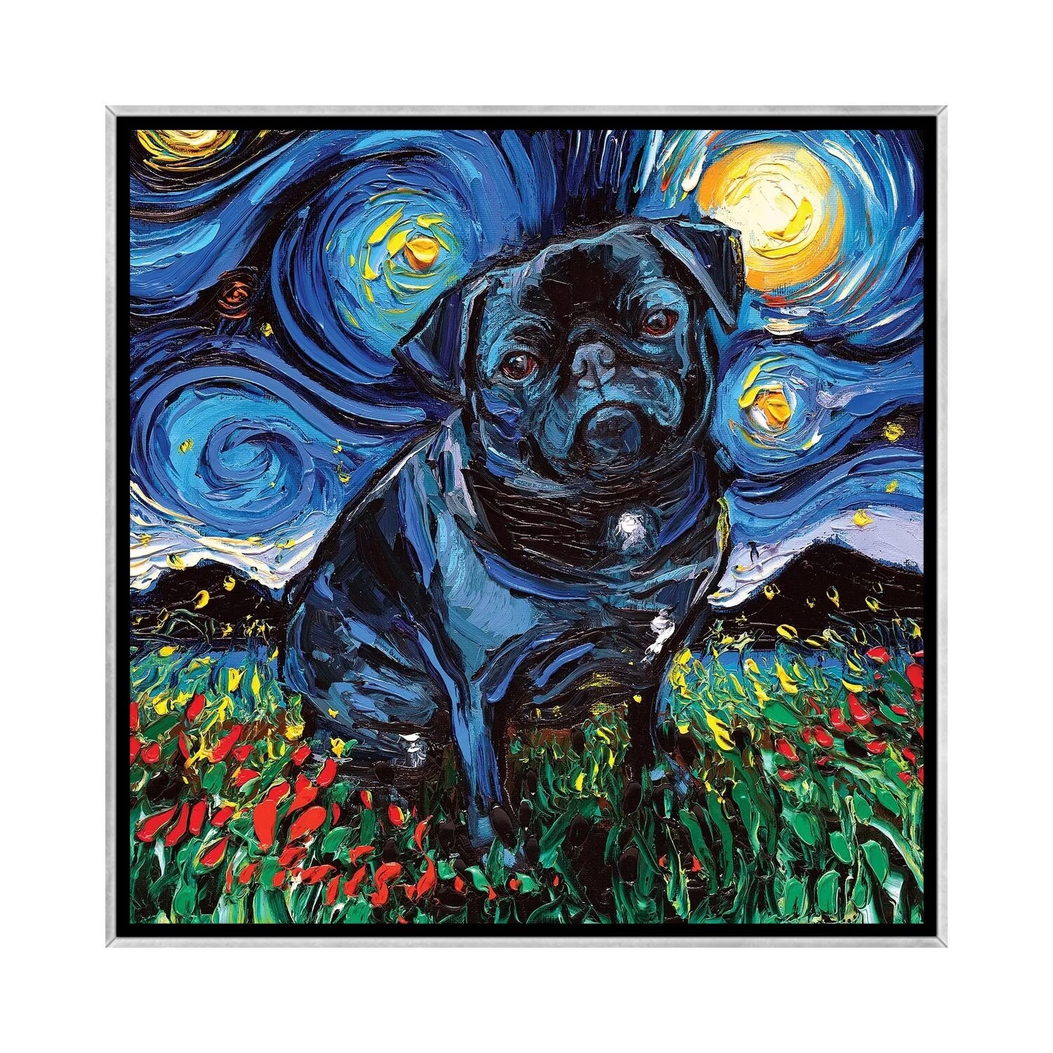 iCanvas "Starry Pug" by Aja Trier Framed Canvas Print
