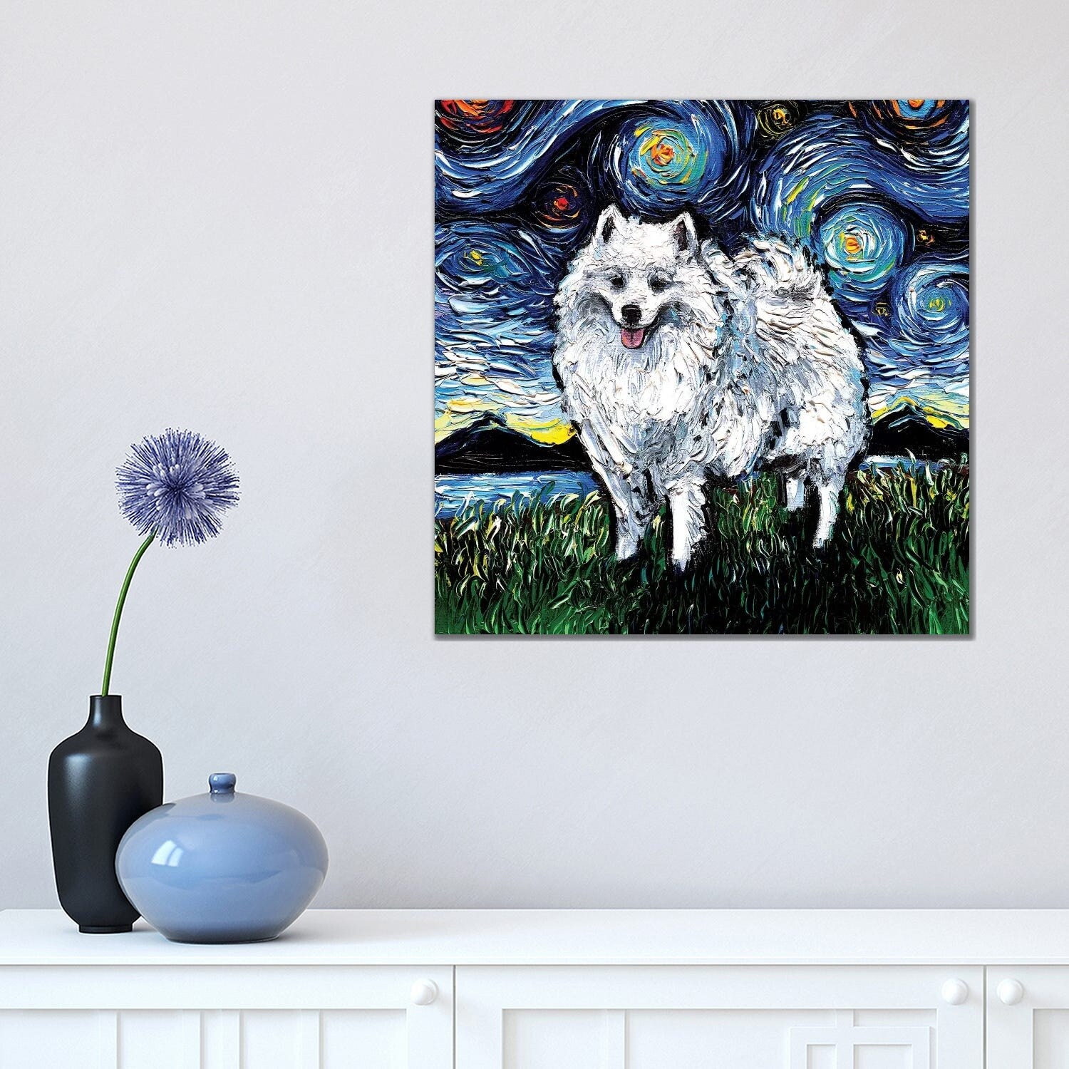 iCanvas "American Eskimo Night" by Aja Trier Canvas Print