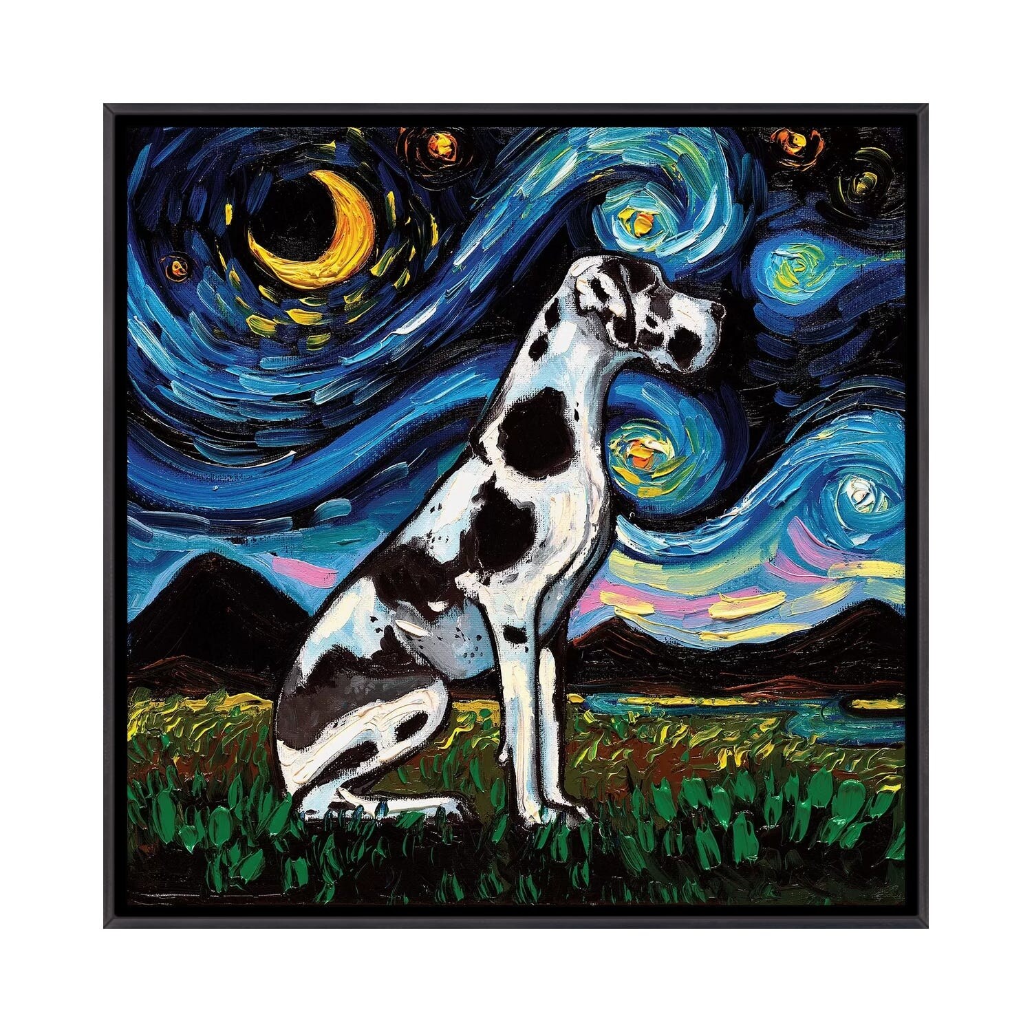 iCanvas "Harlequin Great Dane Night" by Aja Trier Framed