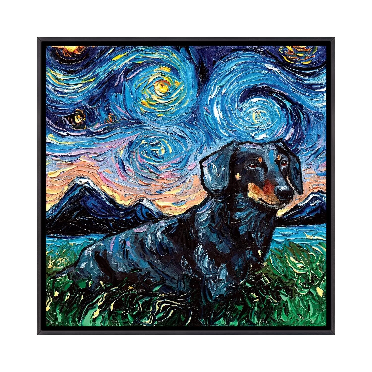 iCanvas "Black And Tan Dachshund Night III" by Aja Trier Framed
