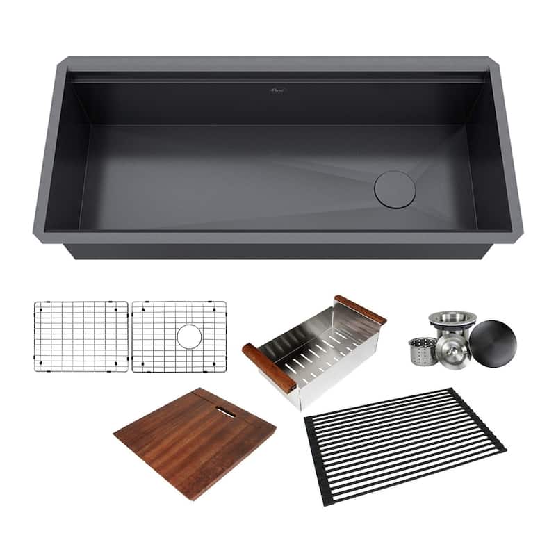 Stainless Steel ALL-IN-ONE Workstation 36 in. 16-Gauge Undermount Single Bowl Kitchen Sink w/ Build-in Ledge and Accessories