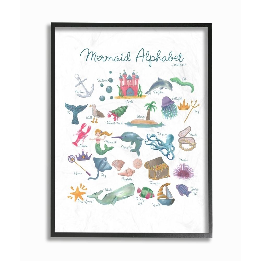 The Kids Room by Stupell Watercolor Mermaid Alphabet Framed Art, 11x14, Proudly Made in USA
