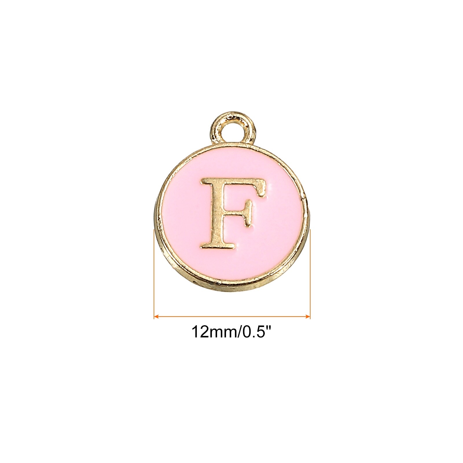 Letter Charm Double Sided Enamel Initial Alphabet Pendant Pink 50pcs