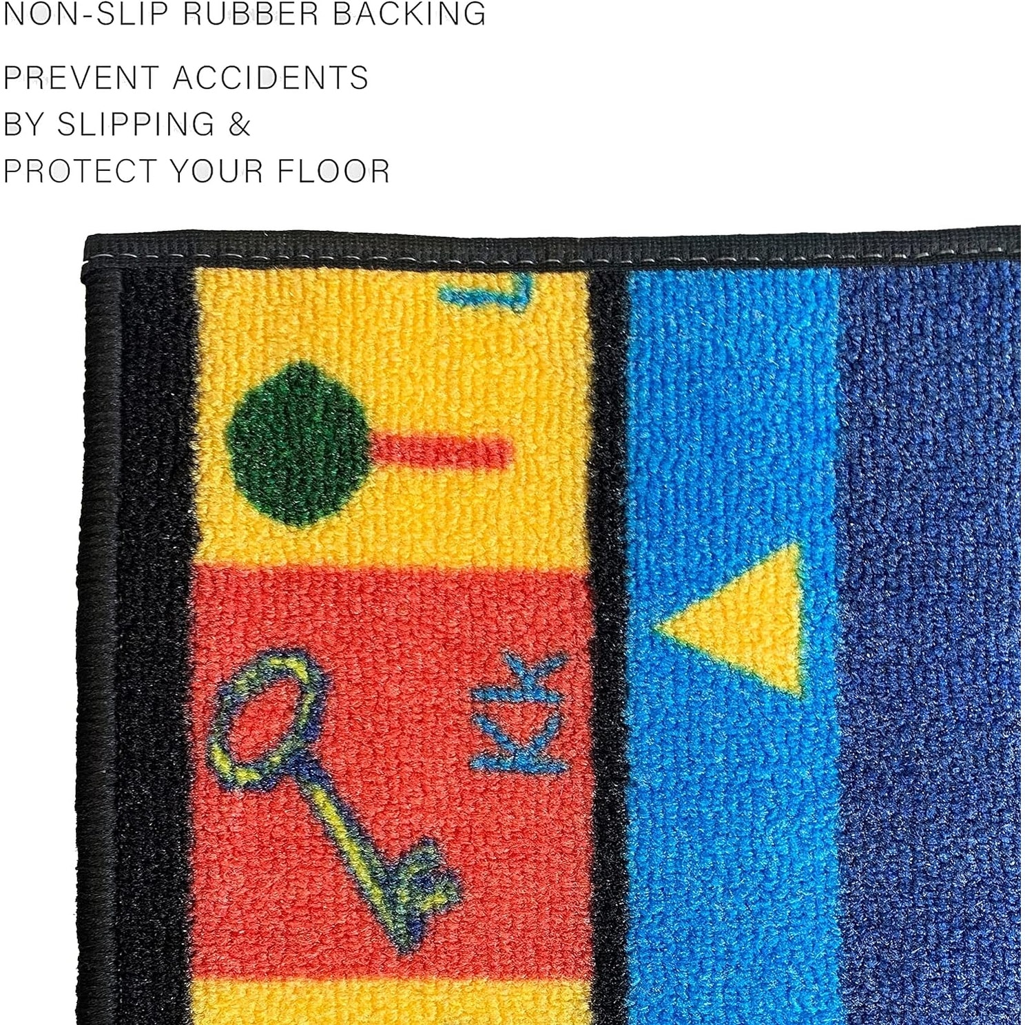 Custom Size Alphabet Border Design Blue Color Non-Slip Rubber Backing-26 Inch WidexYour Choice of Length Runner Rug