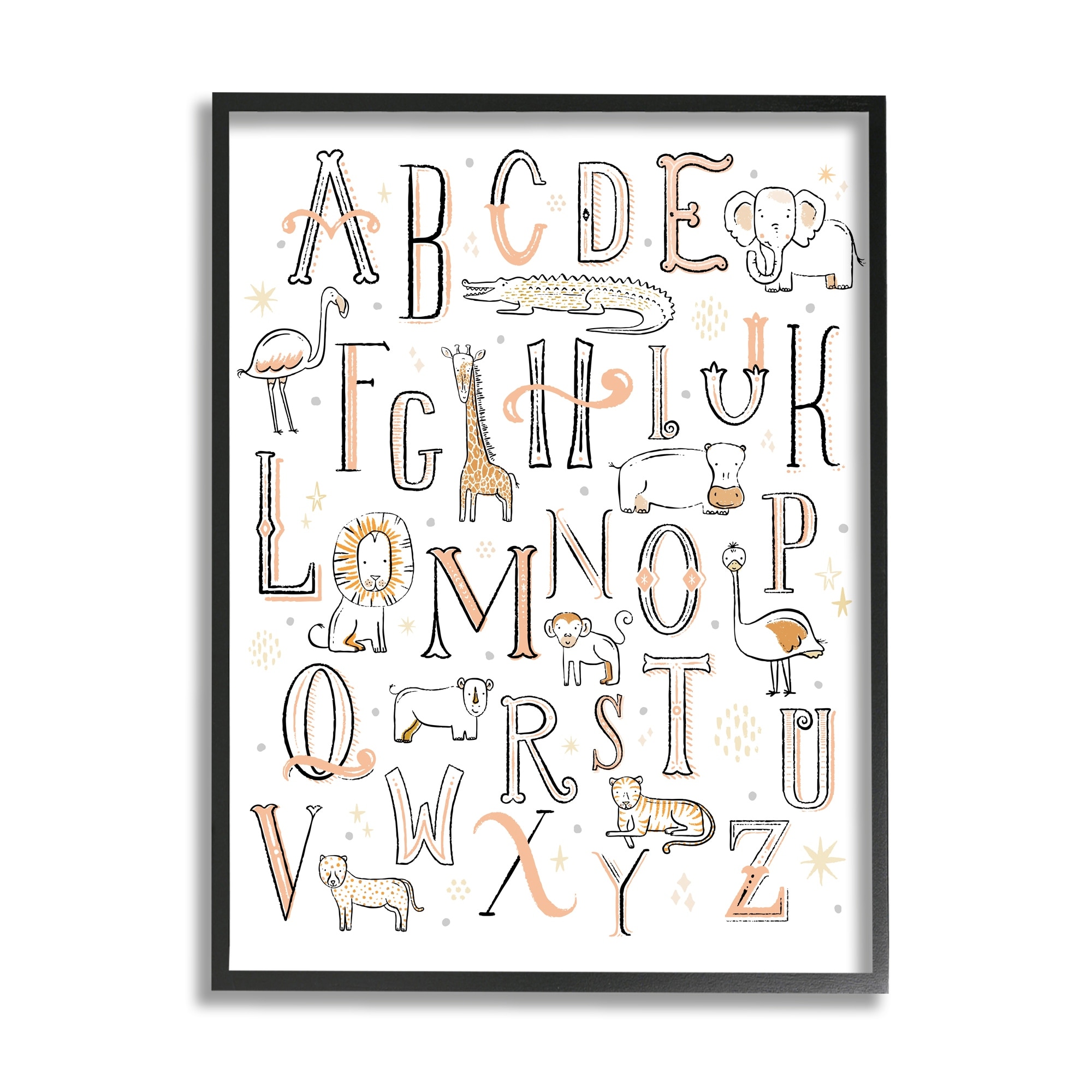 Stupell Nursery Animal Alphabet Chart Soft Orange White Framed Wall Art