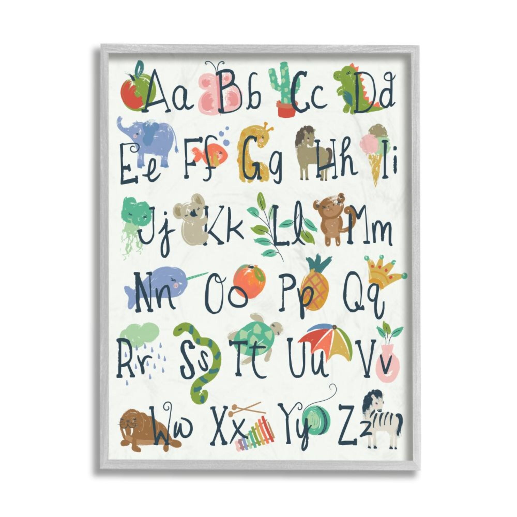 Stupell Industries Kids' Safari Animal Alphabet Colorful Illustrations Framed Wall Art