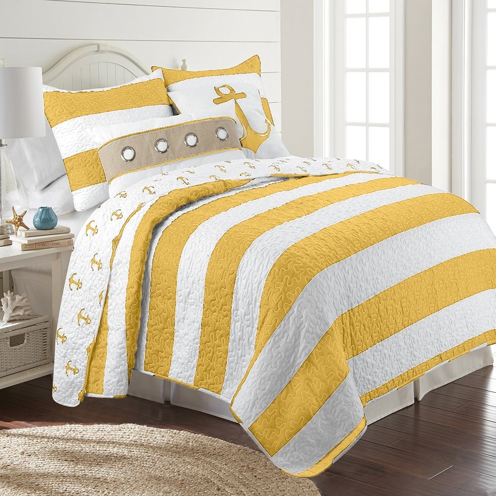 Hallie Nautical Stripe & Anchor Reversible Quilt Set