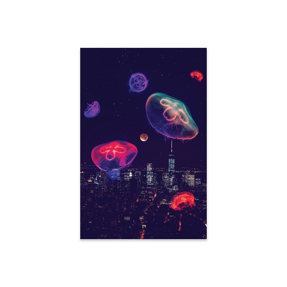City Jellyfish Moon Print on Acrylic Glass by Soaring Anchor Designs