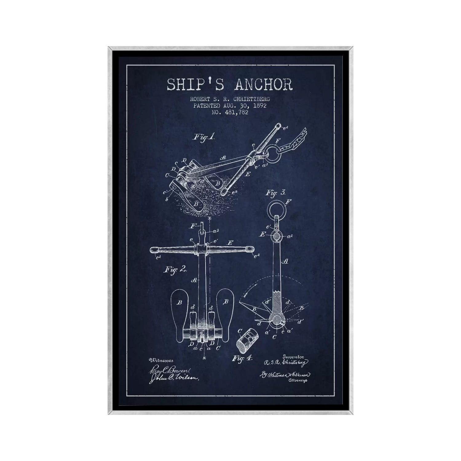iCanvas "Anchor Navy Blue Patent Blueprint" by Aged Pixel Framed