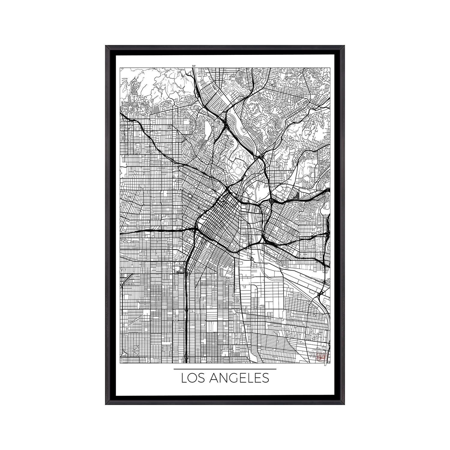 iCanvas "Los Angeles Minimal Urban Blueprint Map" by Hubert Roguski Framed