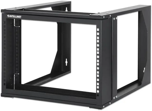 Intellinet 19" Wall Mount 2-Post Open Frame Network Rack, 6U, Hinged Swing Frame, 450 mm (17.7 in.) Depth, Flat Pack, Black RAL 9004 - OEM
