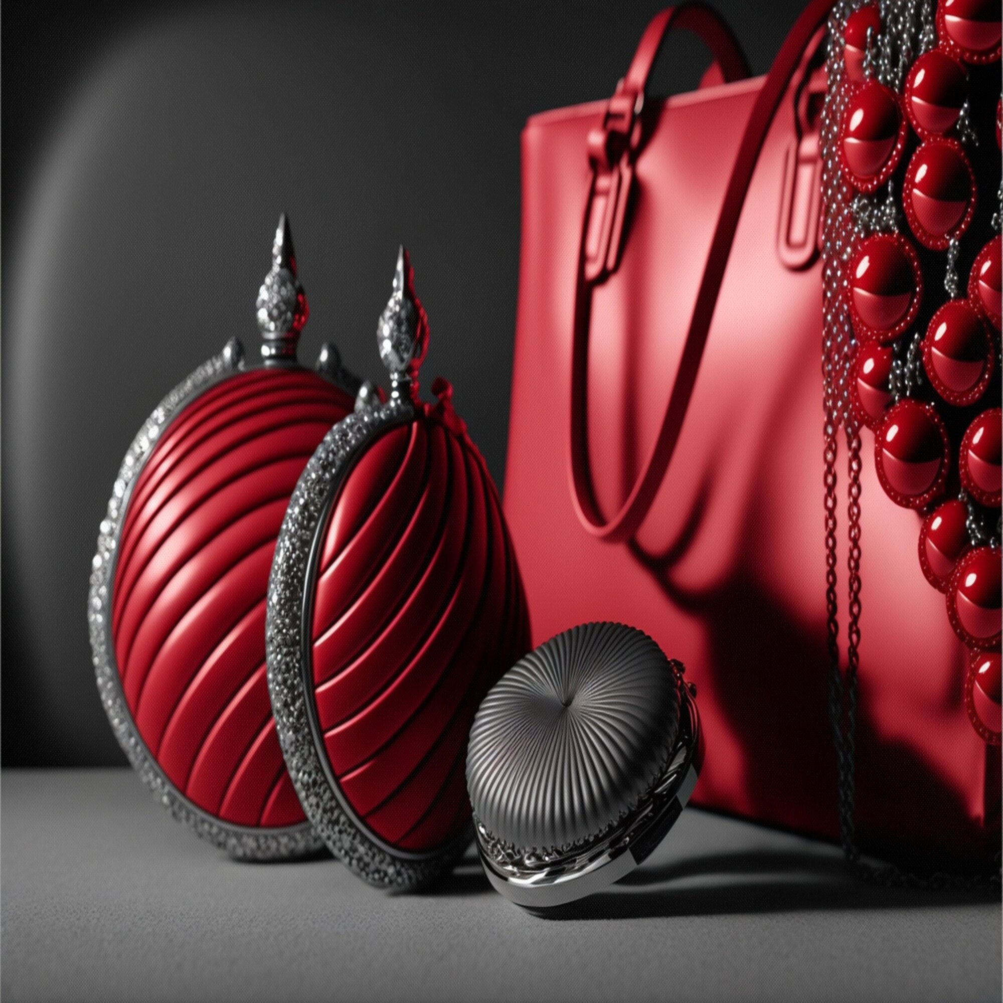 Designart "Vintage Glam Accessories in Red and Black III" Fashion Framed Canvas Wall Art Print