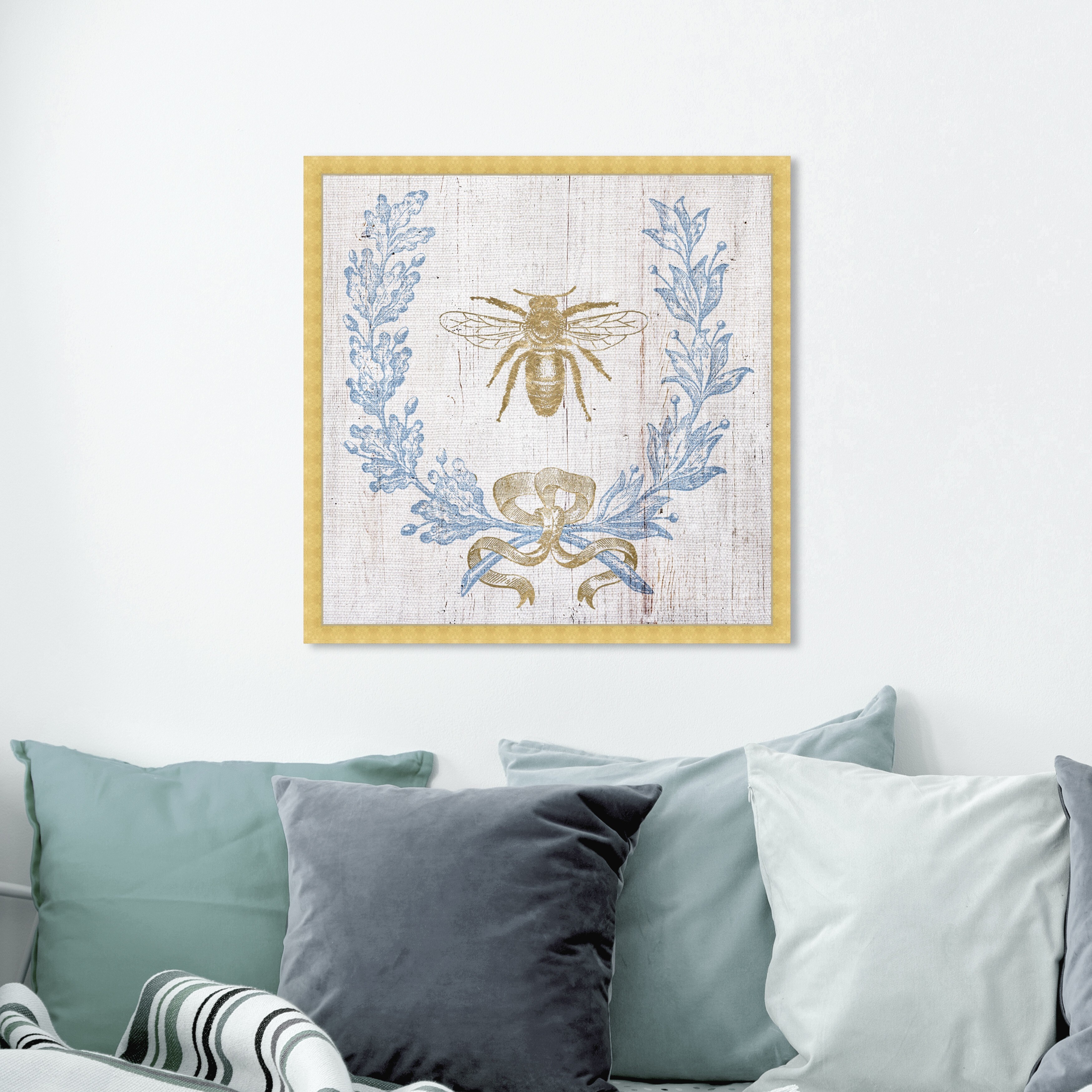 Oliver Gal 'Wreath and Ribbon I' Floral and Botanical Wall Art Framed Print Florals - Blue, Gold