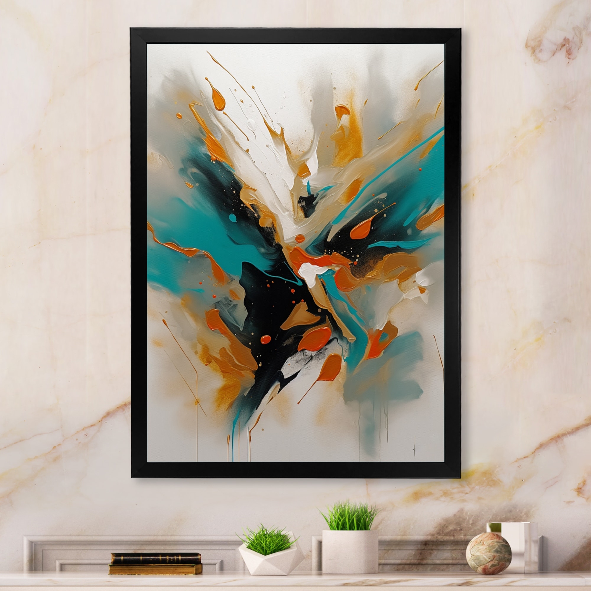 Designart "Paint Brushstrokes Abstract Painted" Abstract Framed Canvas Art Print