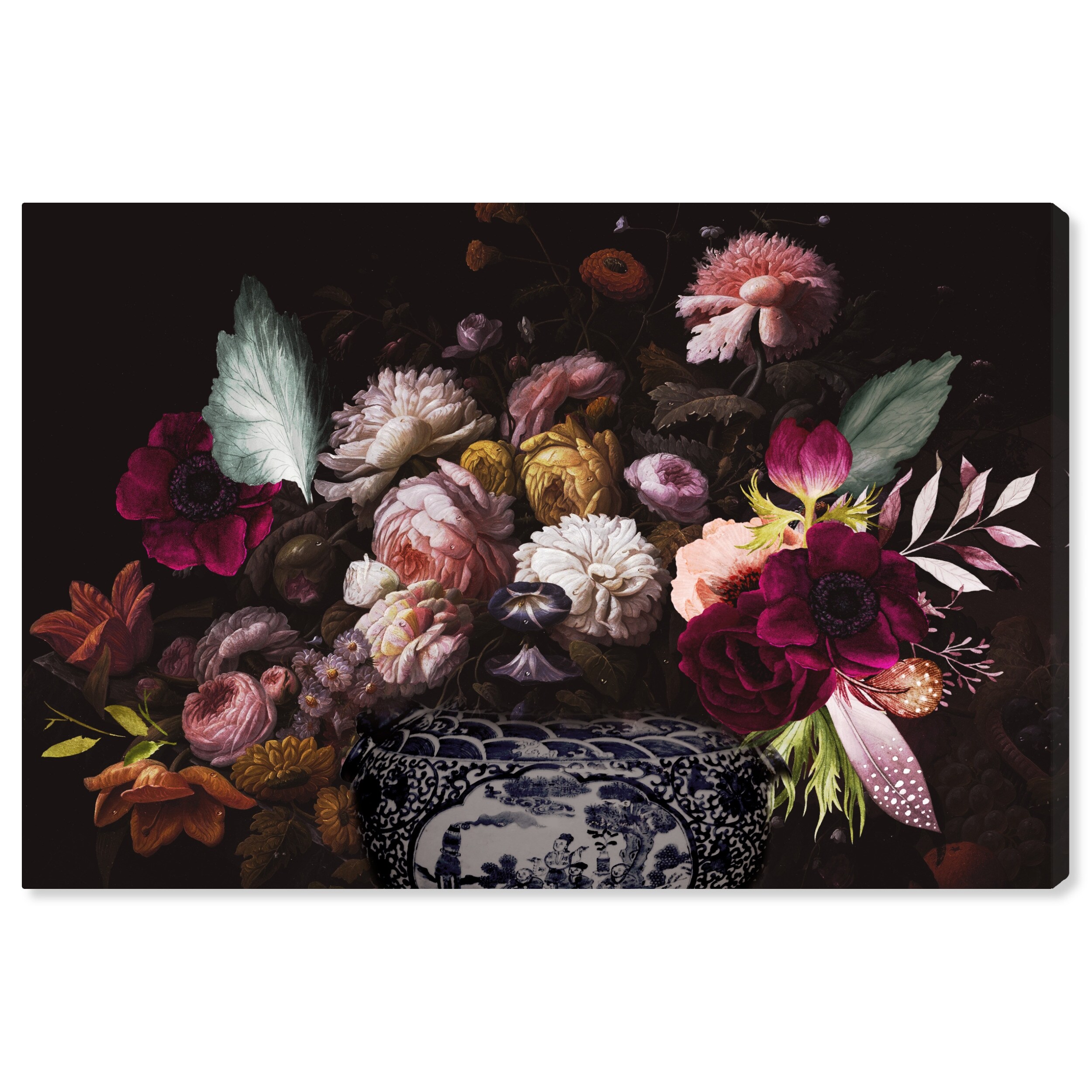 Colorful Classical Bouquet, Elegant Flower Vase Traditional Pink Canvas Wall Art Print for Dining Room