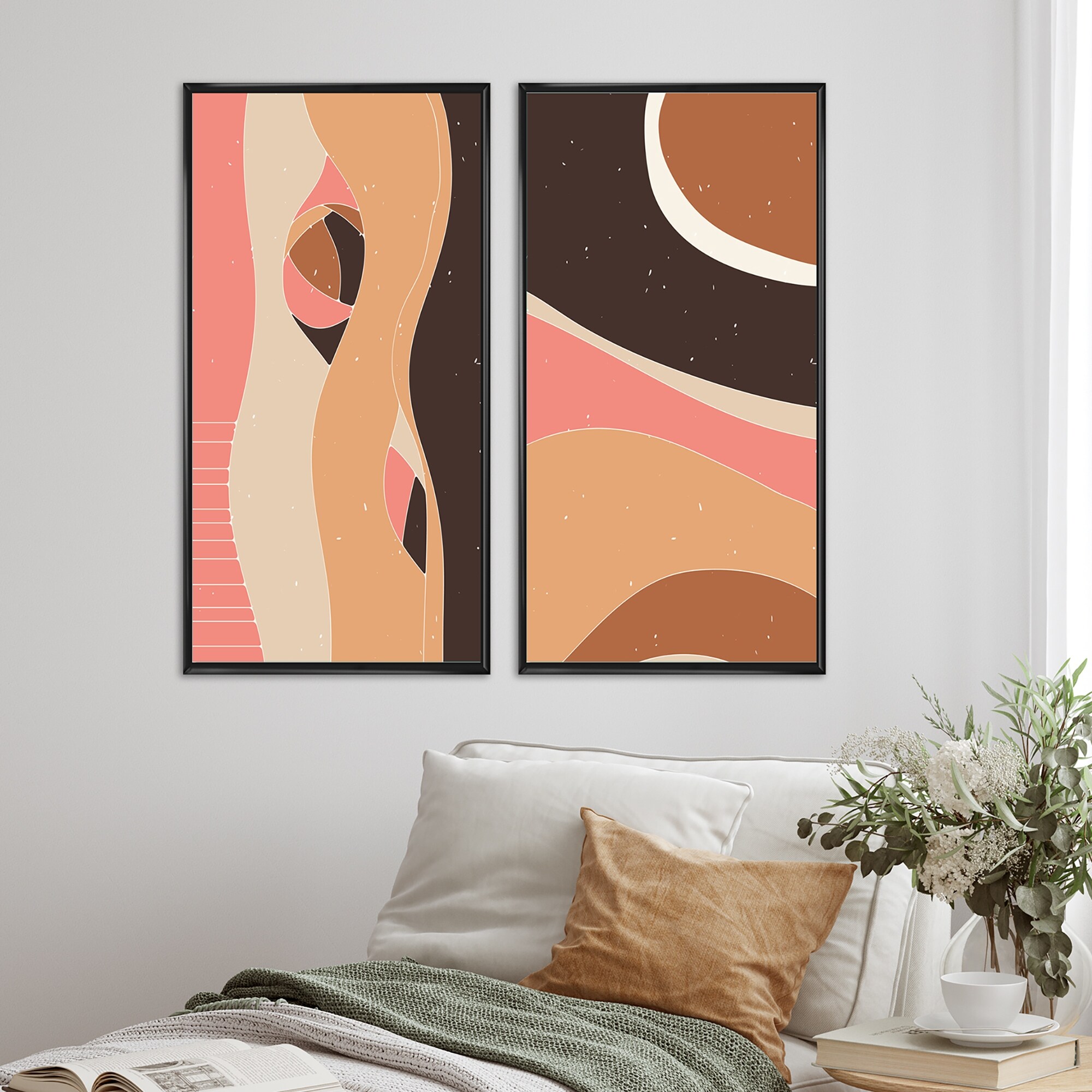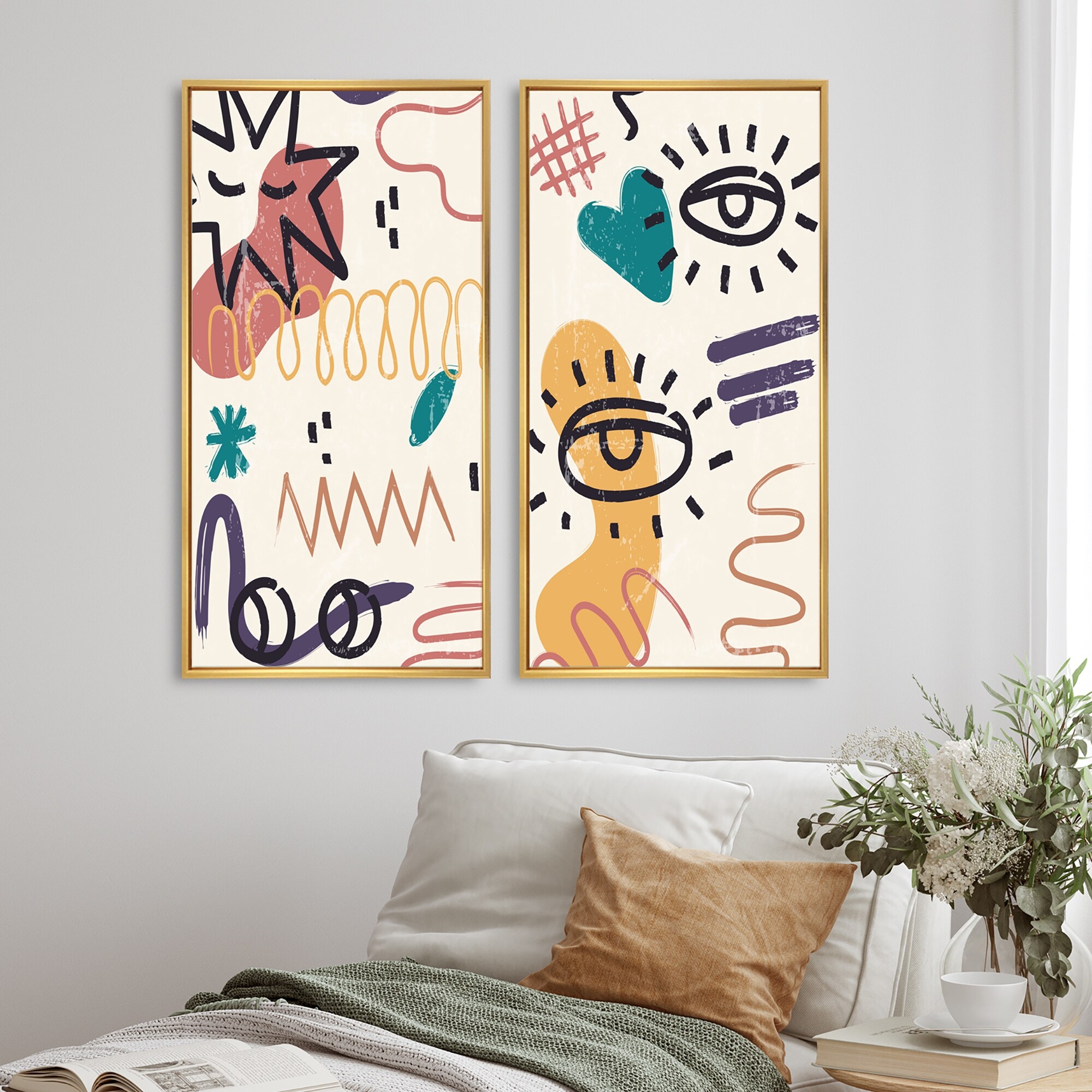 Designart "Retro Abstract Colorful Landscape Design V" Abstract Framed Art Set of 2 Pieces