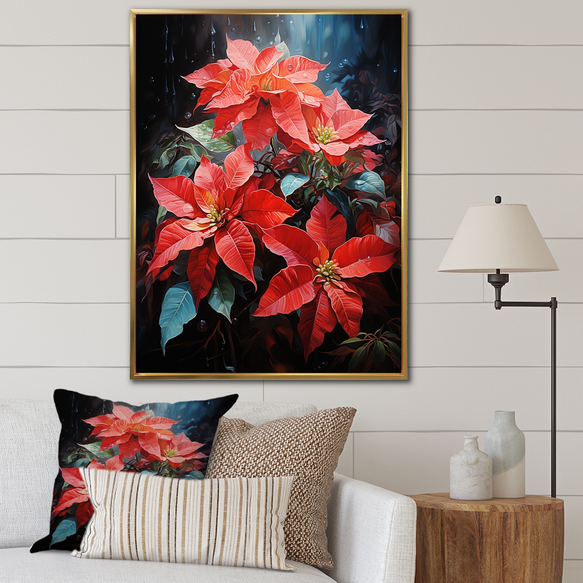 Designart "Red Black Poinsettia Flower Vibrance" Poinsettias Framed Canvas Wall Art