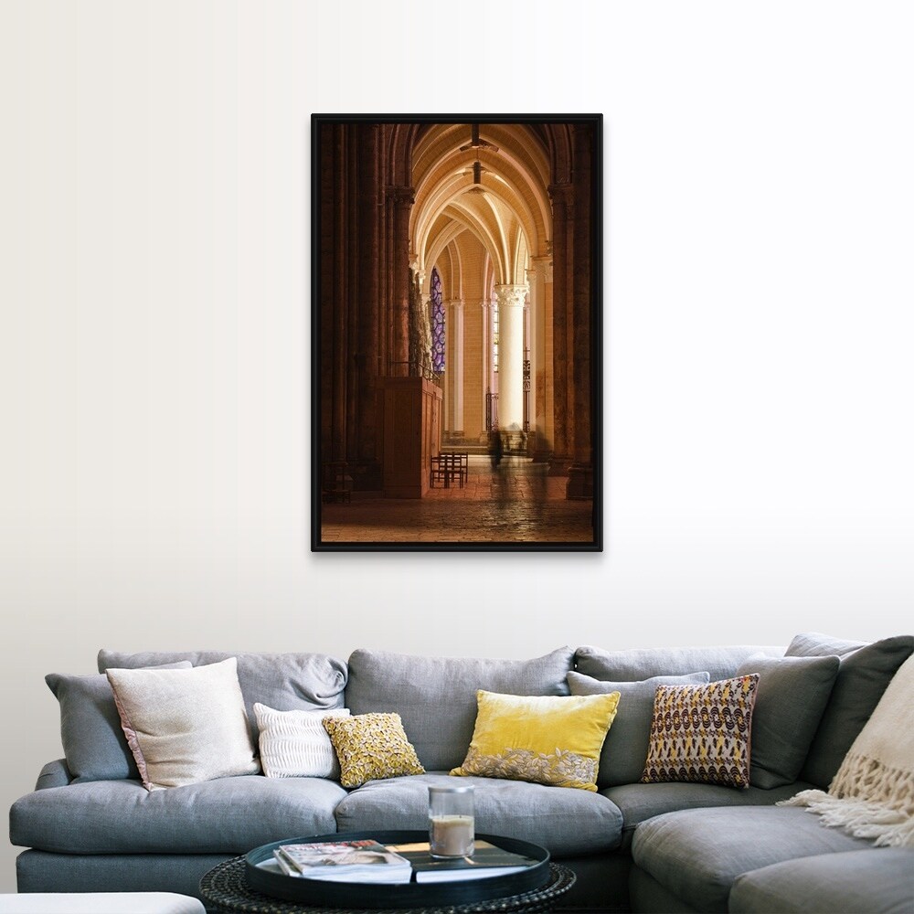 "Looking down an aisle in Chartres cathedral." Black Float Frame Canvas Art