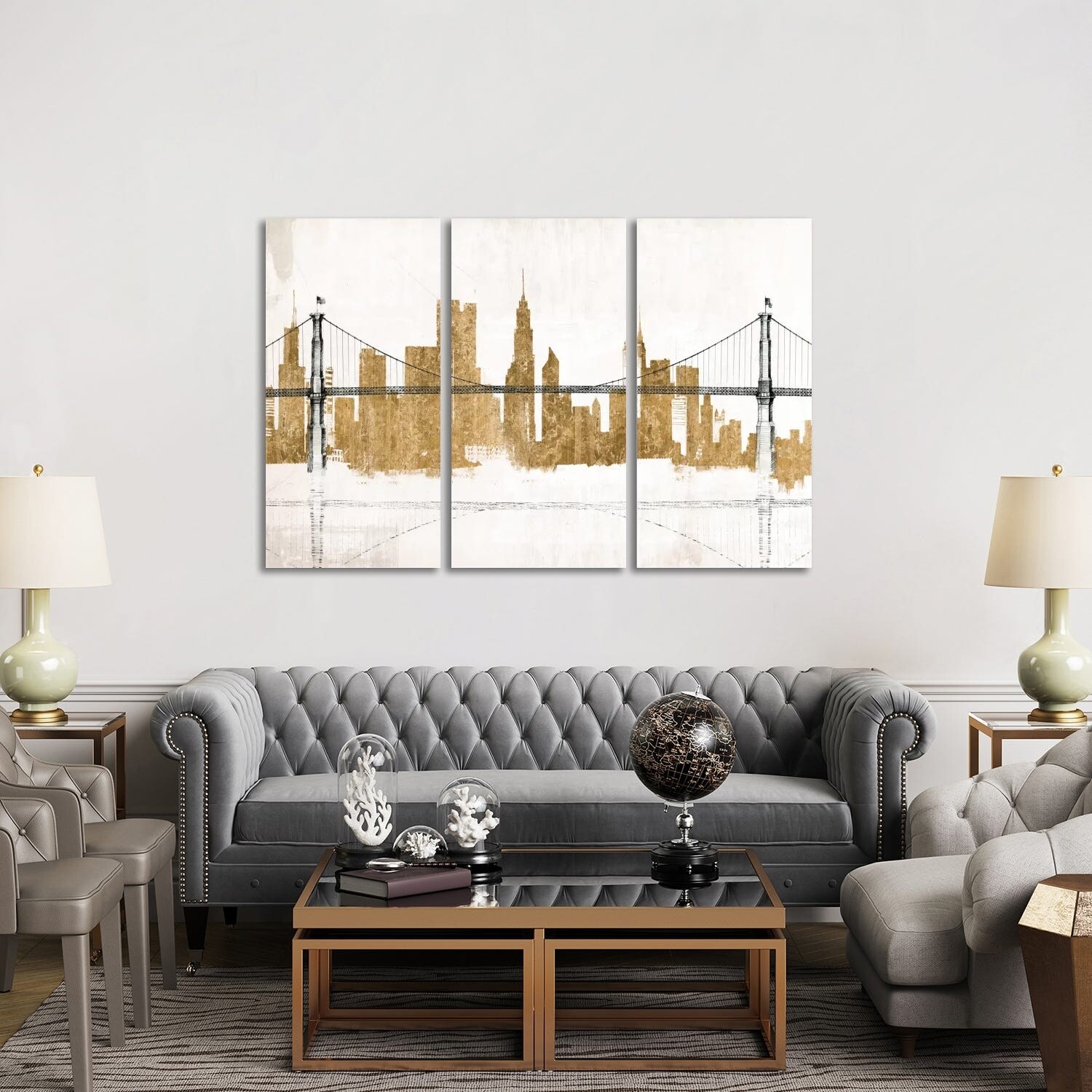 iCanvas "Bridge and Skyline Gold" by Avery Tillmon 3-Piece Canvas Wall Art Set