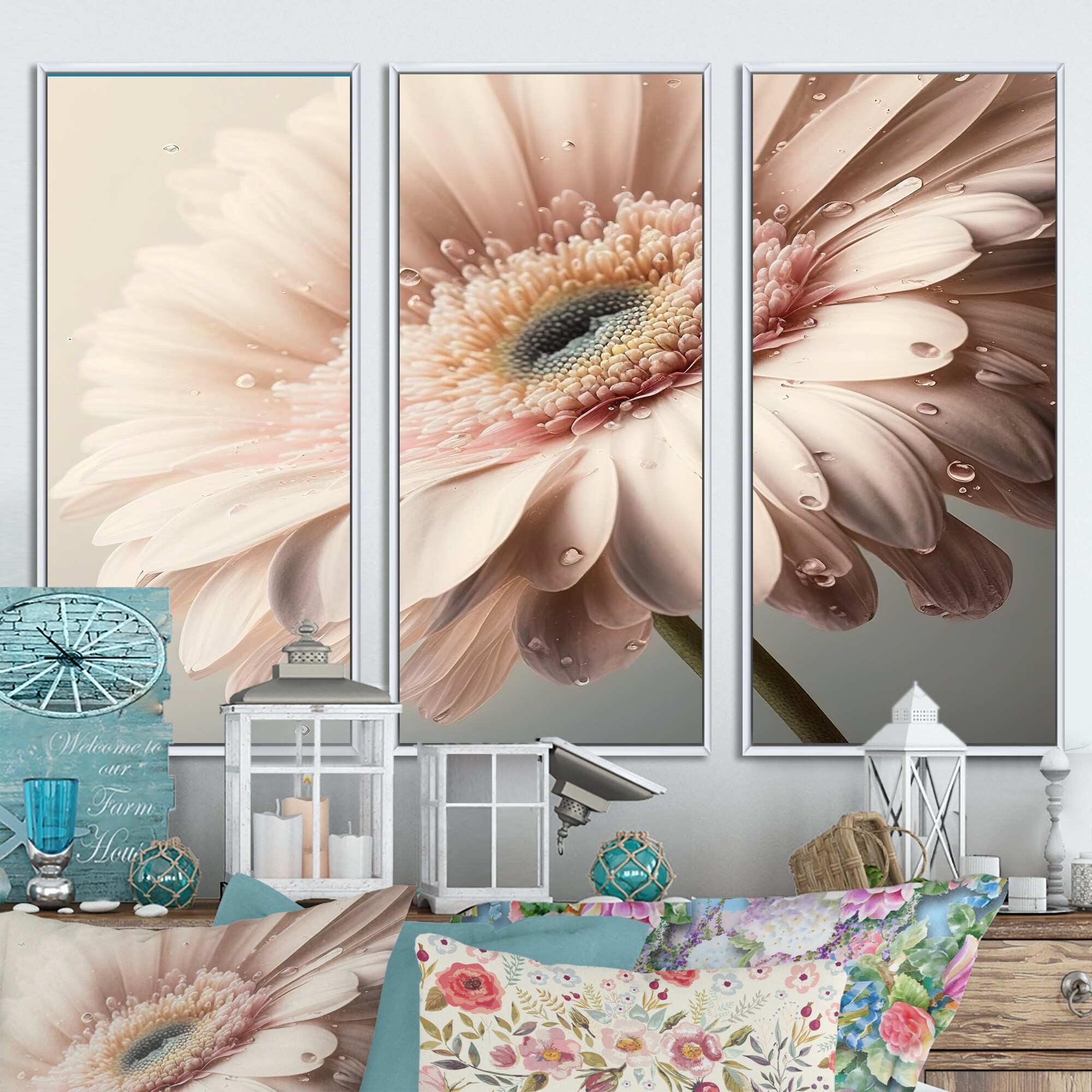 Designart "Pink Gerbera Flowers I" Floral Daisy Framed Canvas Art Print - 3 Panels