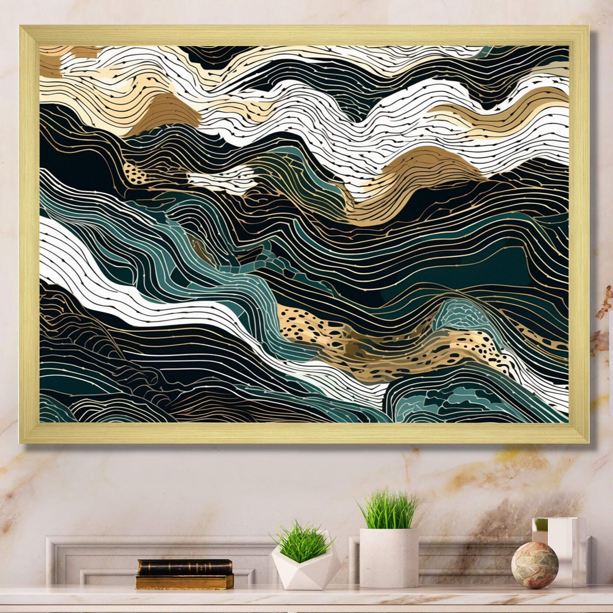 Designart "Canyon Ridge Explorations IV" Abstract Liquid Ink Framed Art Print