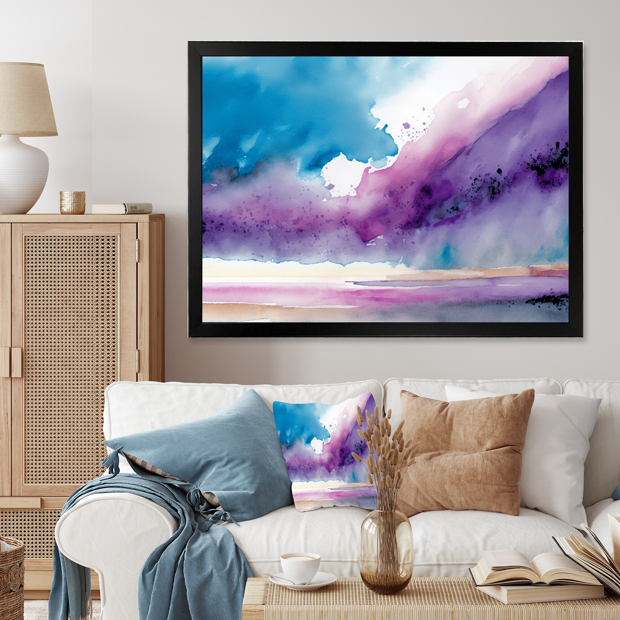 Designart "Violet Storm At the Horizon III" Abstract Liquid Ink Framed Art Print