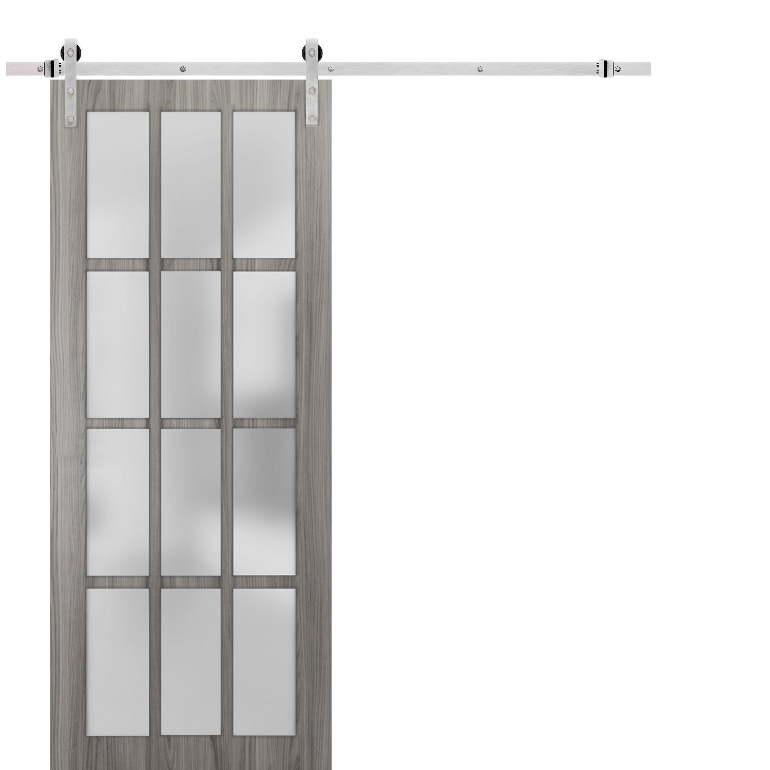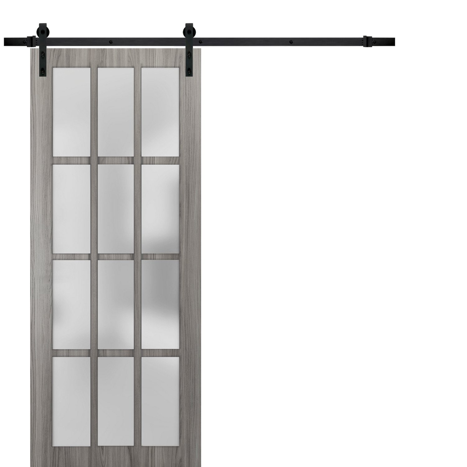 Sturdy Barn Door Frosted Glass 12 Lites / Felicia 3312 Ginger Ash Gray