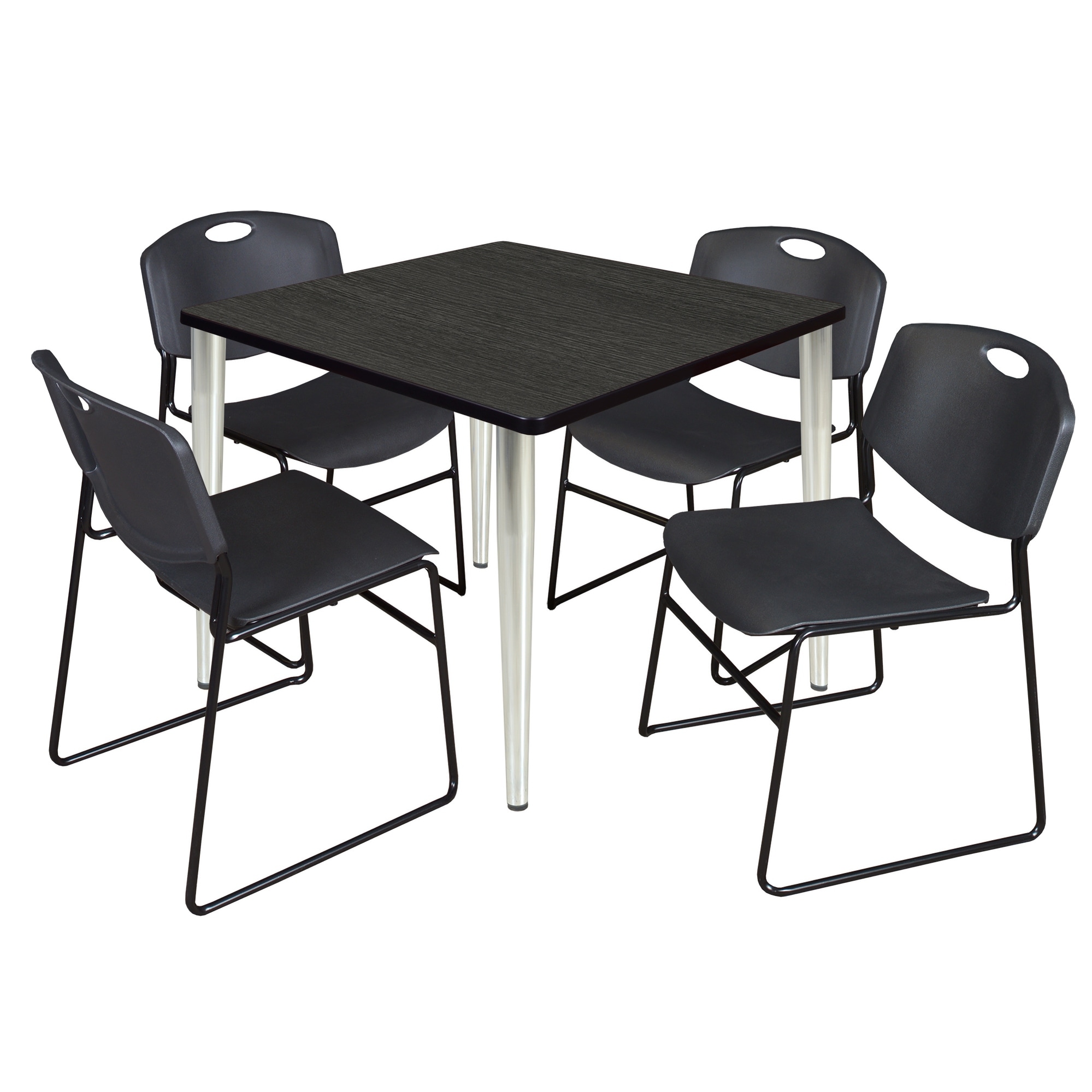 Kahlo 36" Square Breakroom Table- Ash Grey/ Chrome & 4 Zeng Stack Chairs- Black