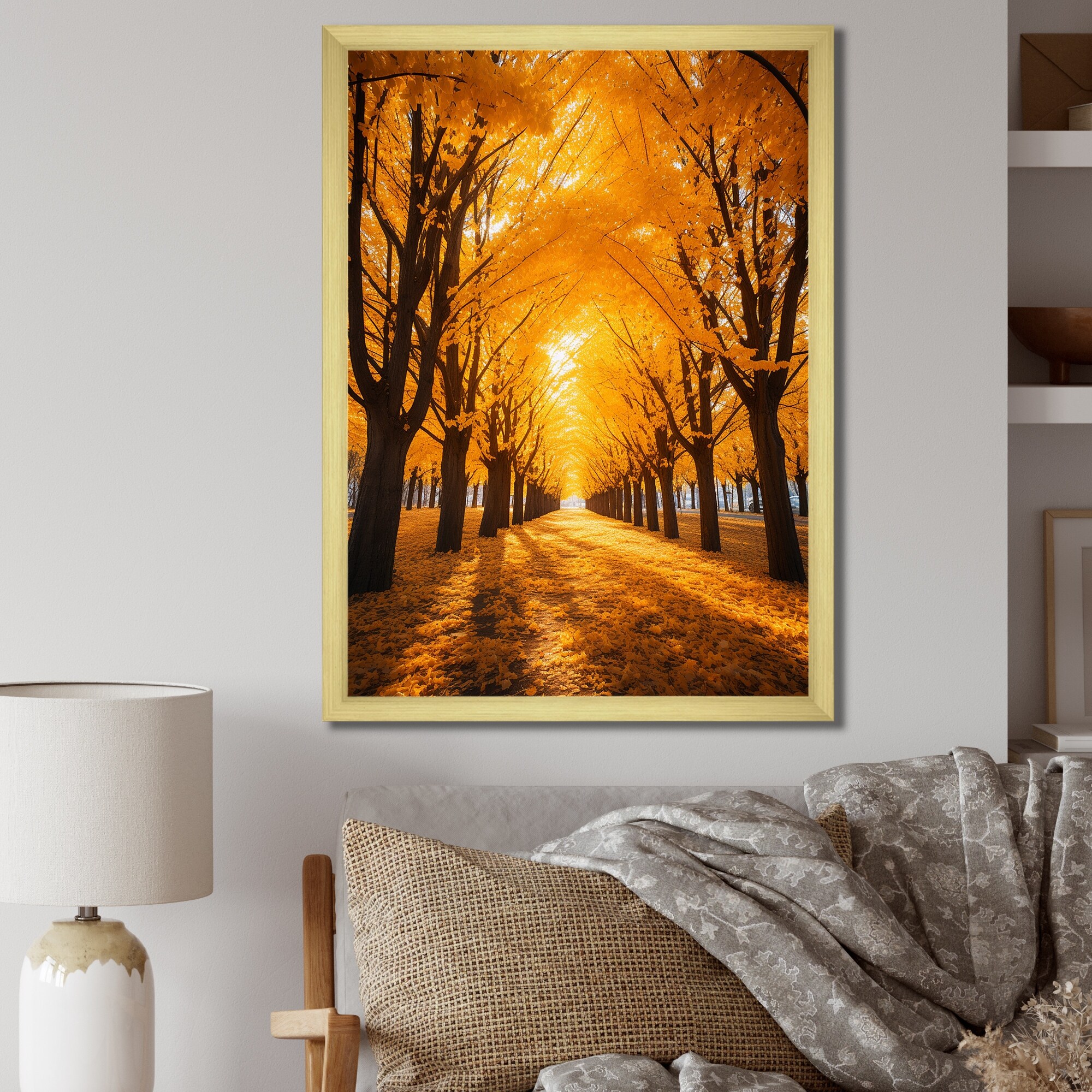 Designart "Tree Golden Autumn Canopy II" Landscape Trees Framed Wall Art Prints