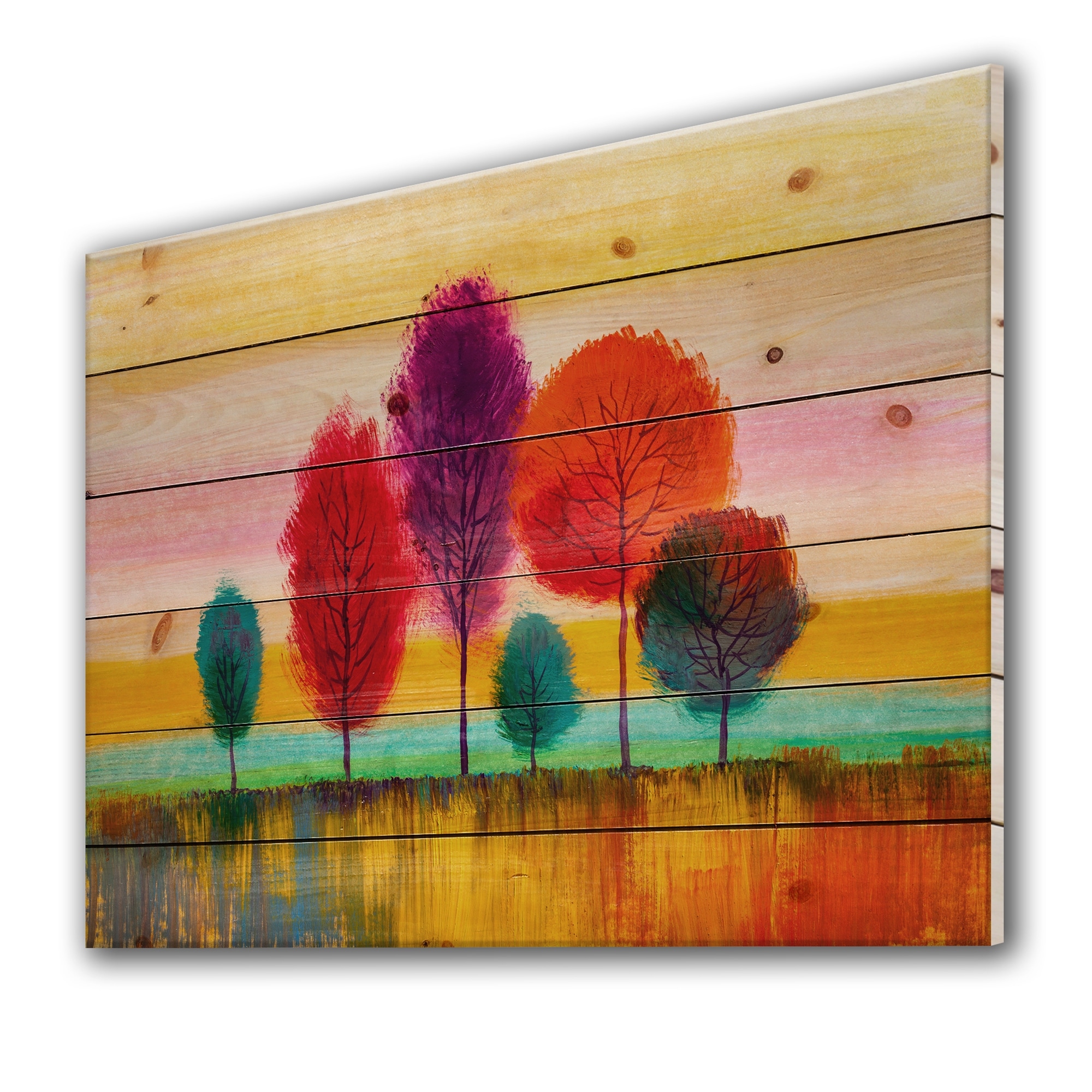 Designart 'Autumn Colored Forest Treescape X' Farmhouse Print on Natural Pine Wood