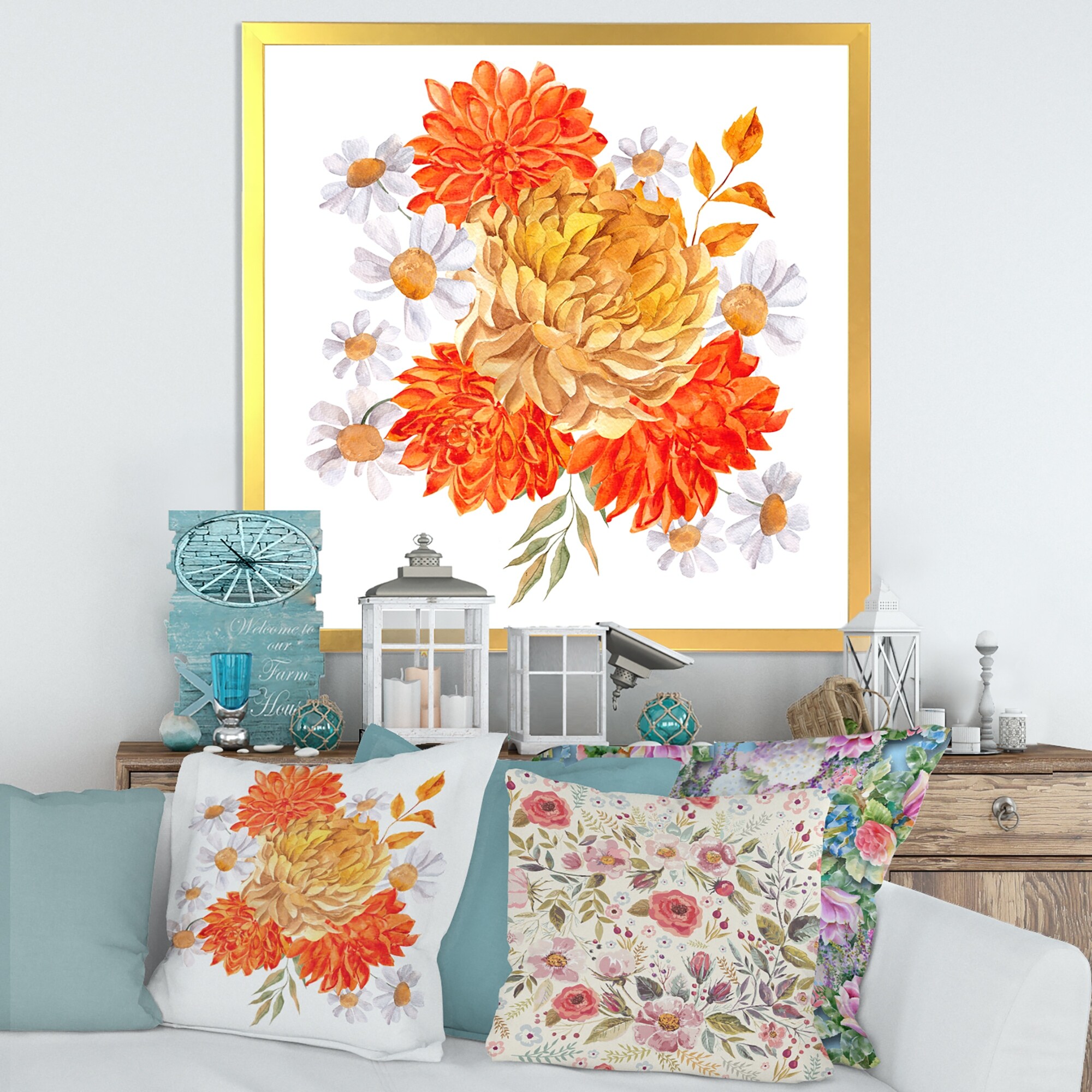 Designart "Autumn Bouquet With Orange And Yellow Flowers" Traditional Framed Art Print