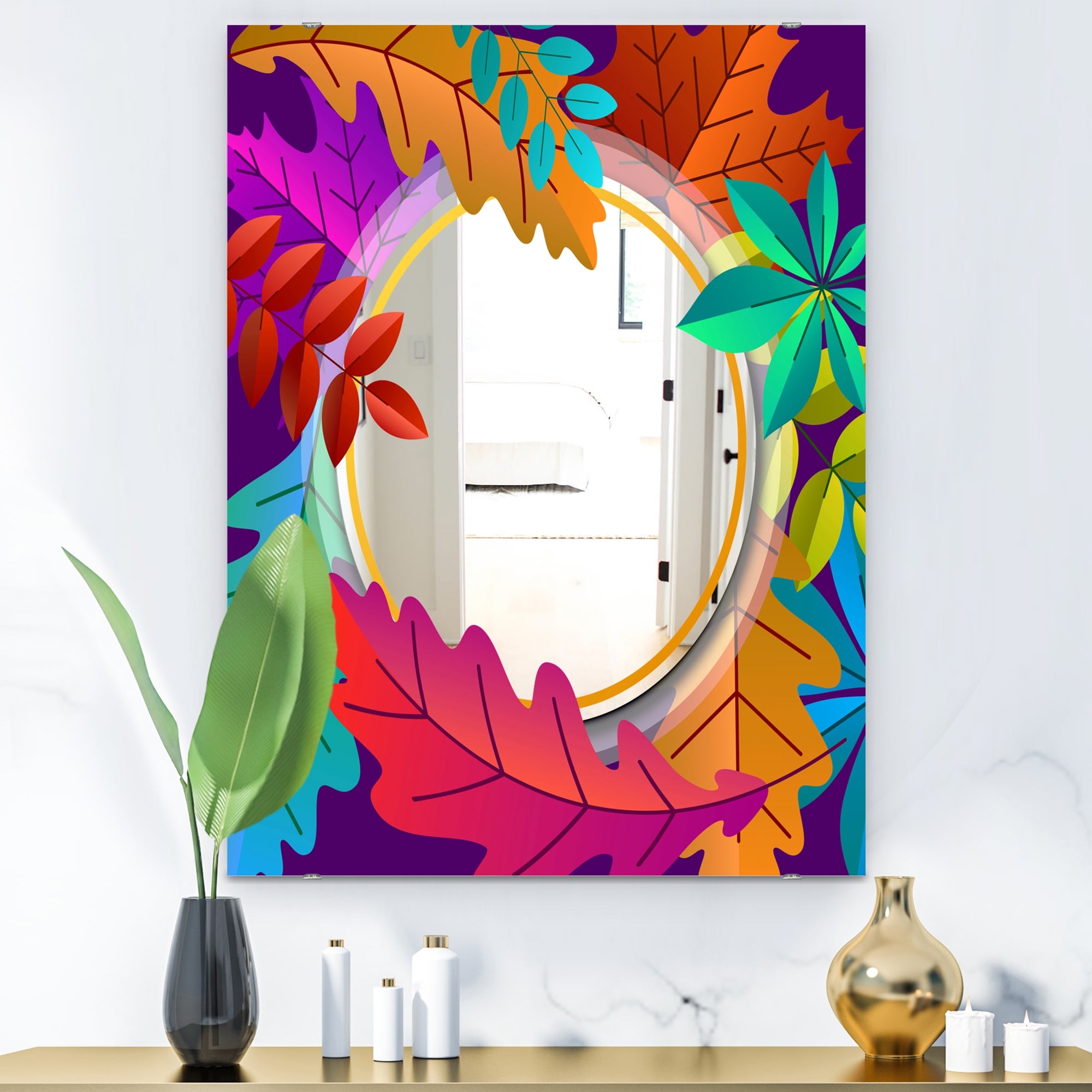 Designart 'Autumn With Round and Leaves' Farmhouse Mirror - Large Printed Wall Mirror