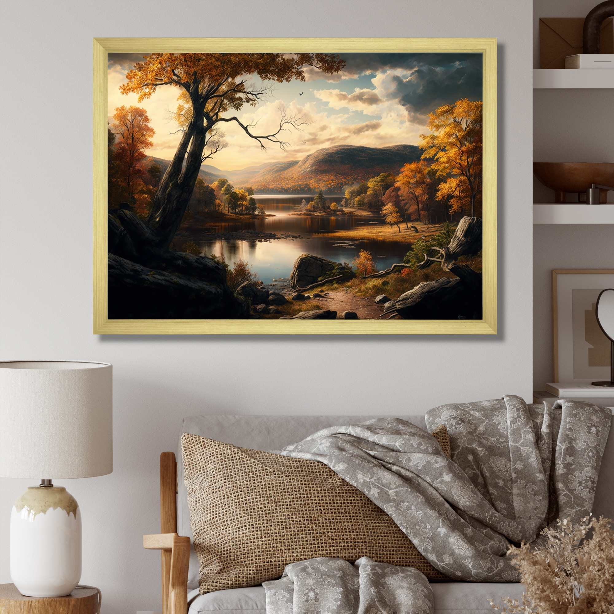 Designart "Autumnal Forest By the Lake Side II" Lake House Framed Art Print