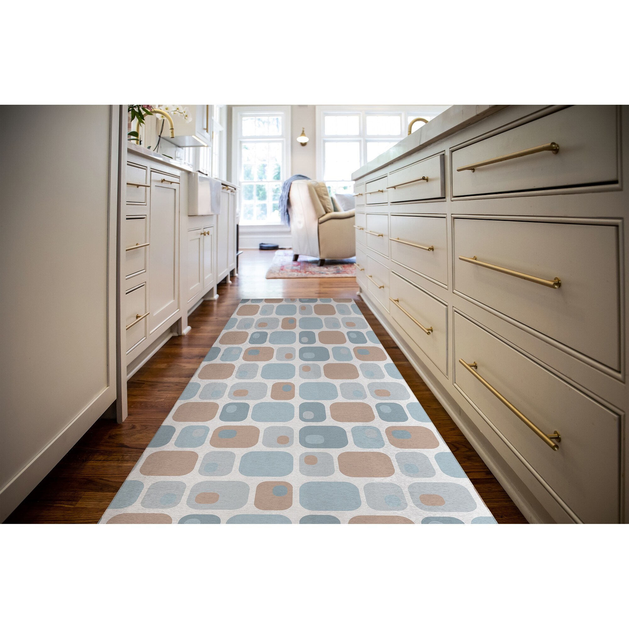 ROUNDED RECTANGLES LIGHT BLUE Kitchen Mat By Becky Bailey